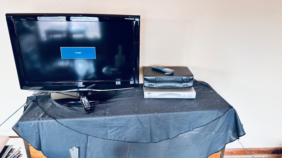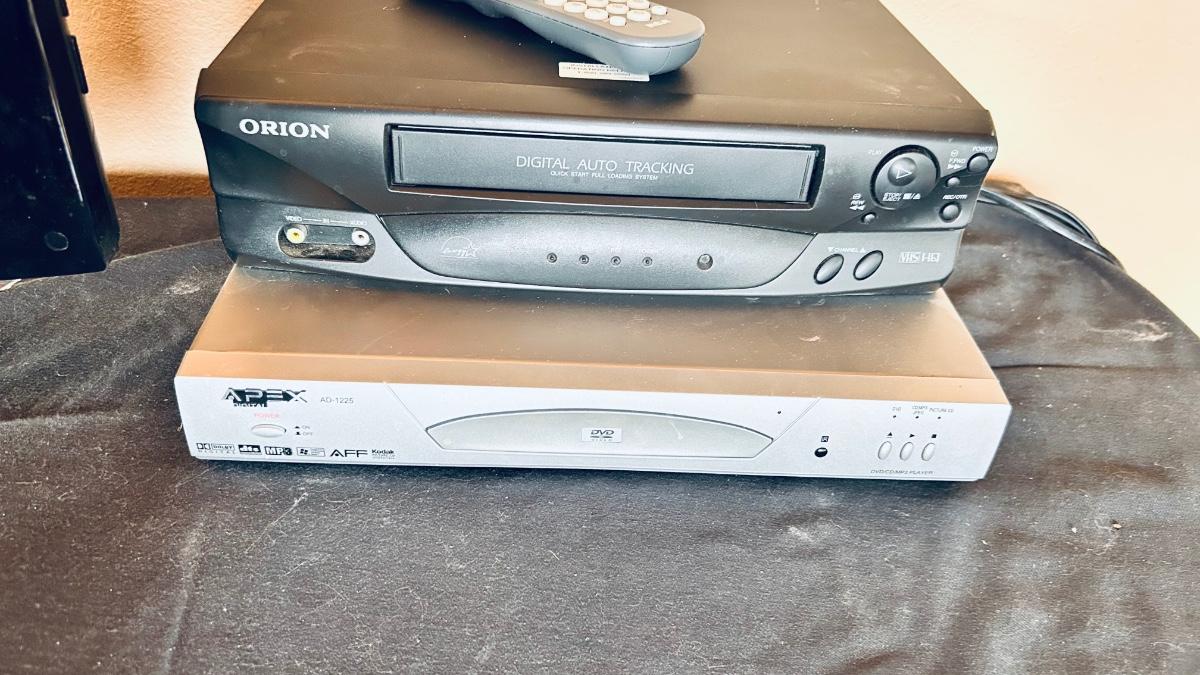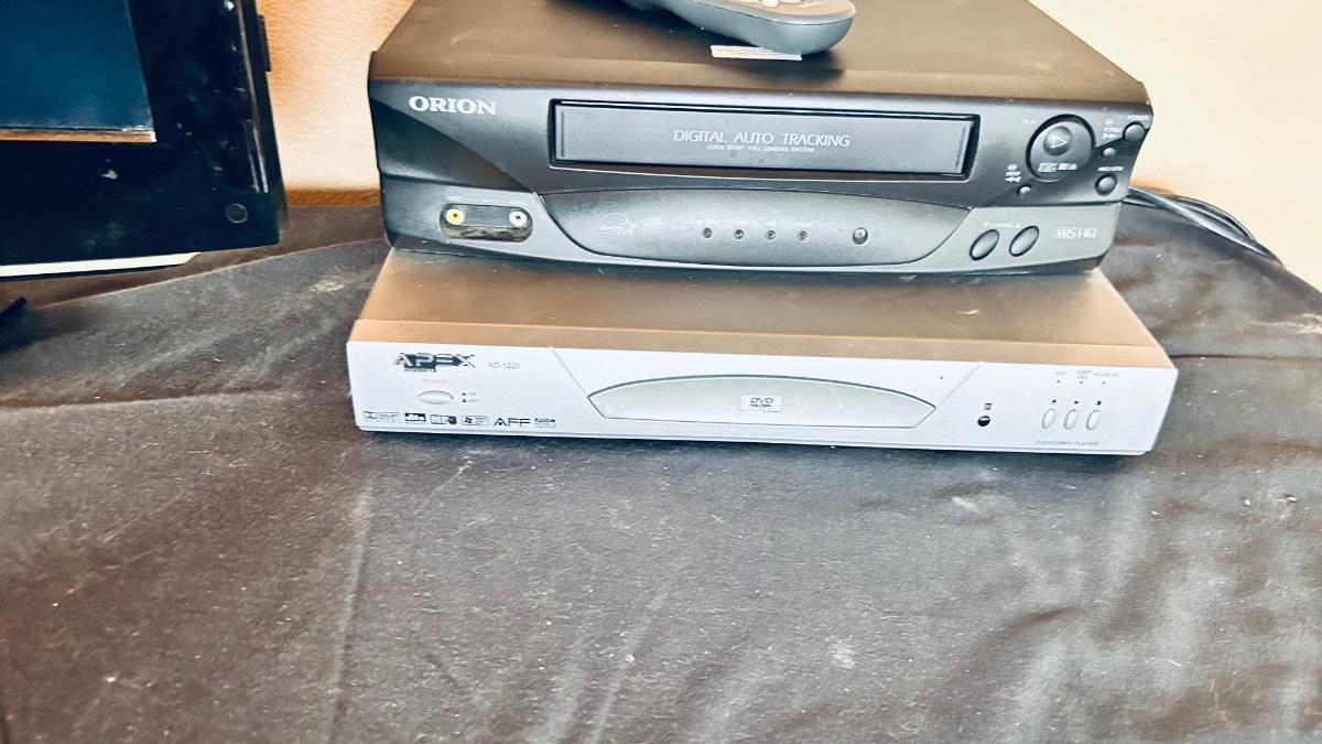 32” COBY LCD TV, ORION VCR , APEX DVD PLAYER WITH REMOTES