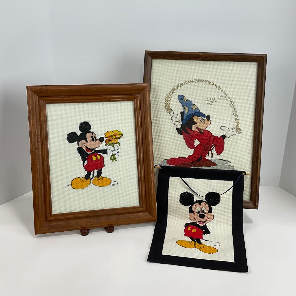 Three cross stitch Mickey Mouse craft pieces. Two of them are framed pieces a few have some minor stains or marks. Please see photos for details and condition. Any condition statement is given as a courtesy to a client, is an opinion, and should not be treated as a statement of fact. Reference to condition written, oral or within a condition report shall not be regarded as a full account of condition and may not include all defects, alterations, or restorations. Absence of a condition report does not imply a lot is flawless or lacking imperfections or damage. Katherine’s Auction & Appraisal Service shall have no responsibility for any error or omission. Returns shall not be accepted on the basis of condition. ::: Shipping is available on this lot. If you require shipping you must let us know at the close of the auction. We will coordinate with you after the item has been won. Shipping fees will include insurance up to or exceeding the value of all items being mailed. If you have any questions regarding this lot please contact the auctioneer either via this website, by direct email or by phone. PICK UP TIMES and other important information can be found in the TERMS and DESCRIPTION of the auction. Please take a look for pertinent information. Thanks!