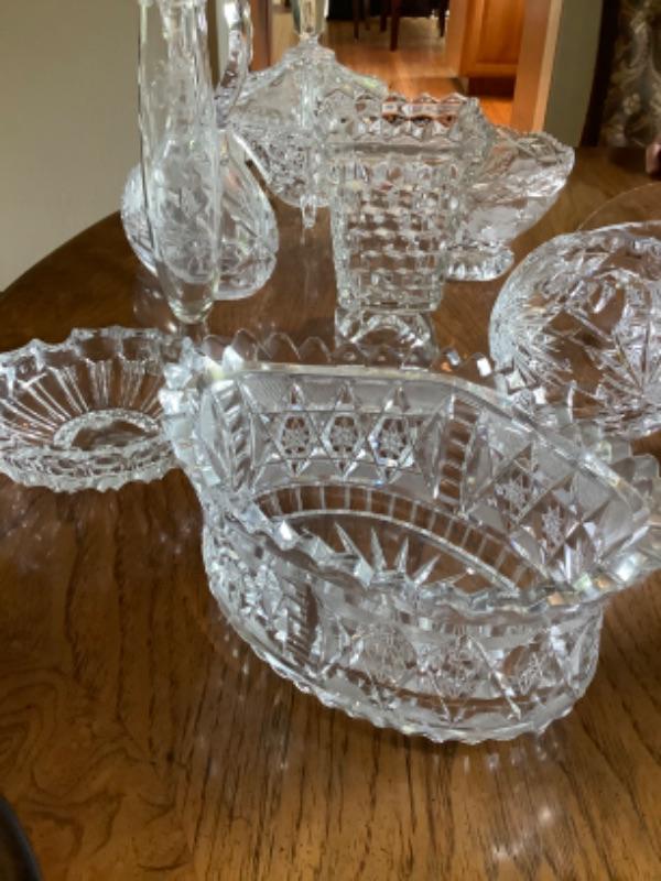 Various bowls, vases, decanters in crystal. All in excellent condition, no chips.