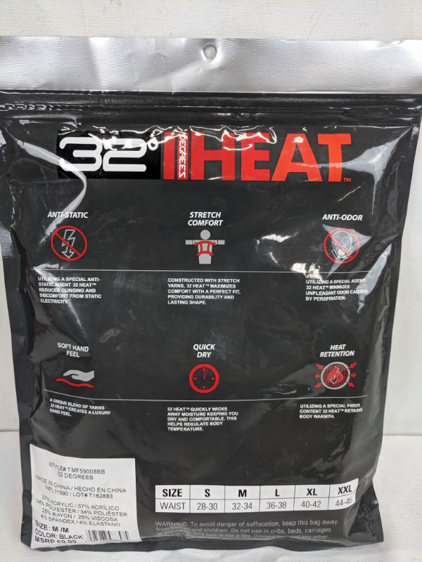 32 Degrees Heat Performance Men's Leggings, Medium, Black - New