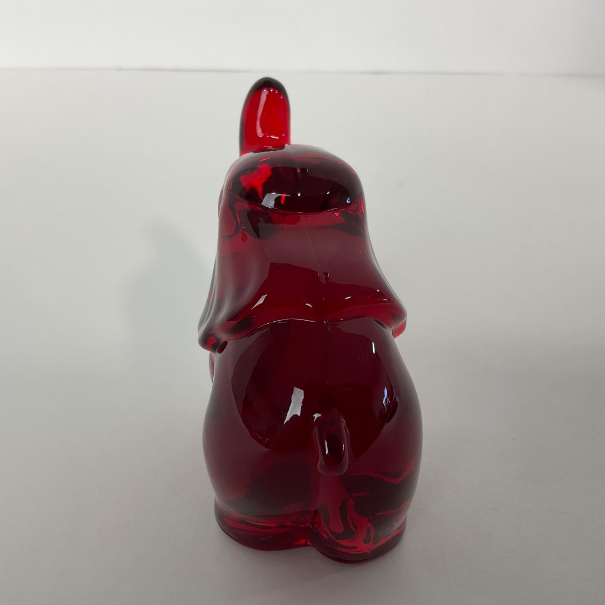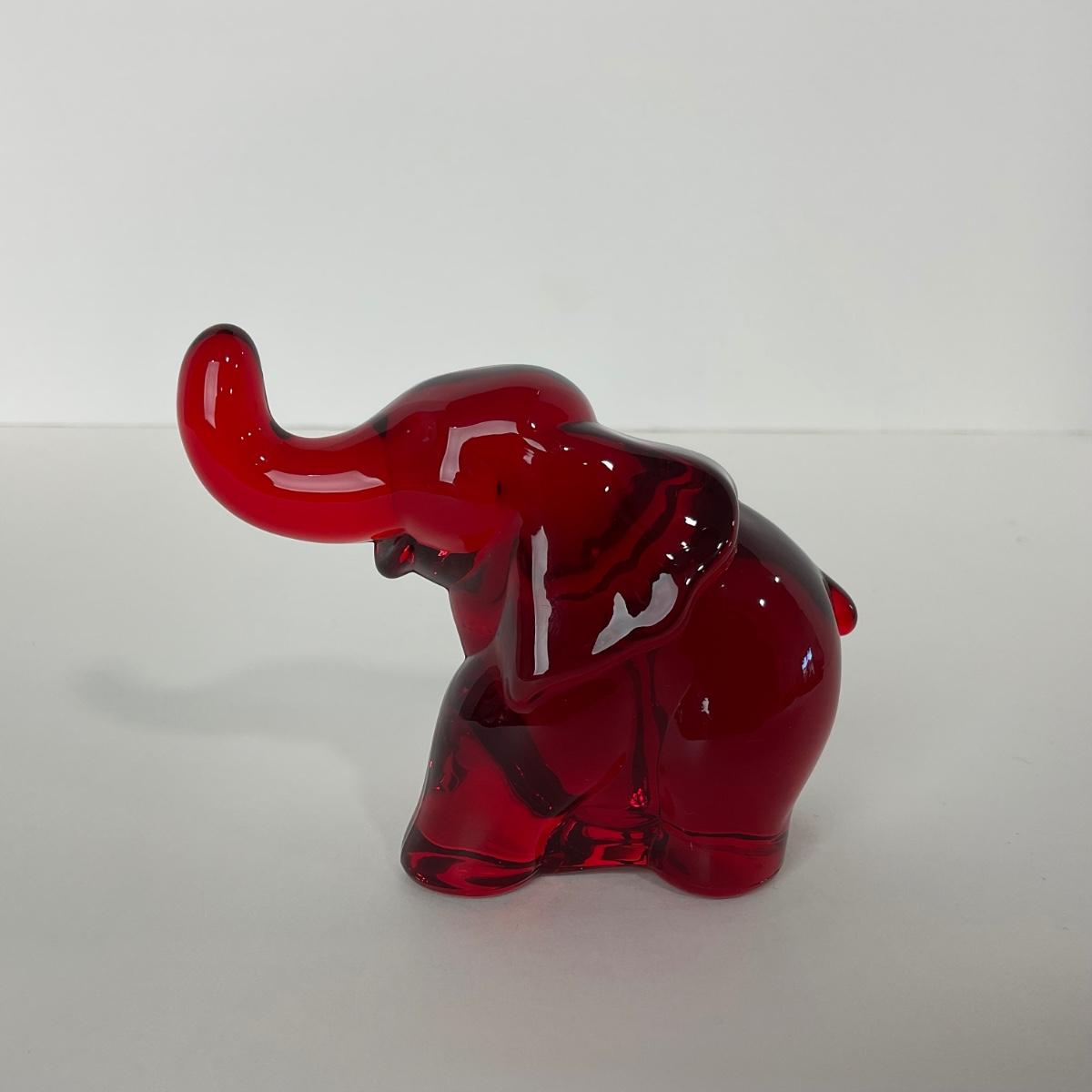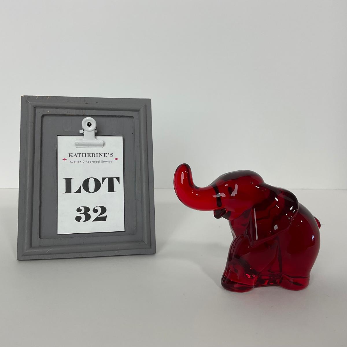 One Fenton Mosser ruby red elephant figure. 4 inches long by 3 inches tall. This piece has no damage, and appears to be in great shape with no visable chips, cracks, or broken pieces. Please see photos for details and condition. Any condition statement is given as a courtesy to a client, is an opinion, and should not be treated as a statement of fact. Reference to condition written, oral or within a condition report shall not be regarded as a full account of condition and may not include all defects, alterations, or restorations. Absence of a condition report does not imply a lot is flawless or lacking imperfections or damage. Katherine’s Auction & Appraisal Service shall have no responsibility for any error or omission. Returns shall not be accepted on the basis of condition. ::: Shipping is available on this lot. If you require shipping you must let us know at the close of the auction. We will coordinate with you after the item has been won. Shipping fees will include insurance up to or exceeding the value of all items being mailed. If you have any questions regarding this lot please contact the auctioneer either via this website, by direct email or by phone. PICK UP TIMES and other important information can be found in the TERMS and DESCRIPTION of the auction. Please take a look for pertinent information. Thanks!