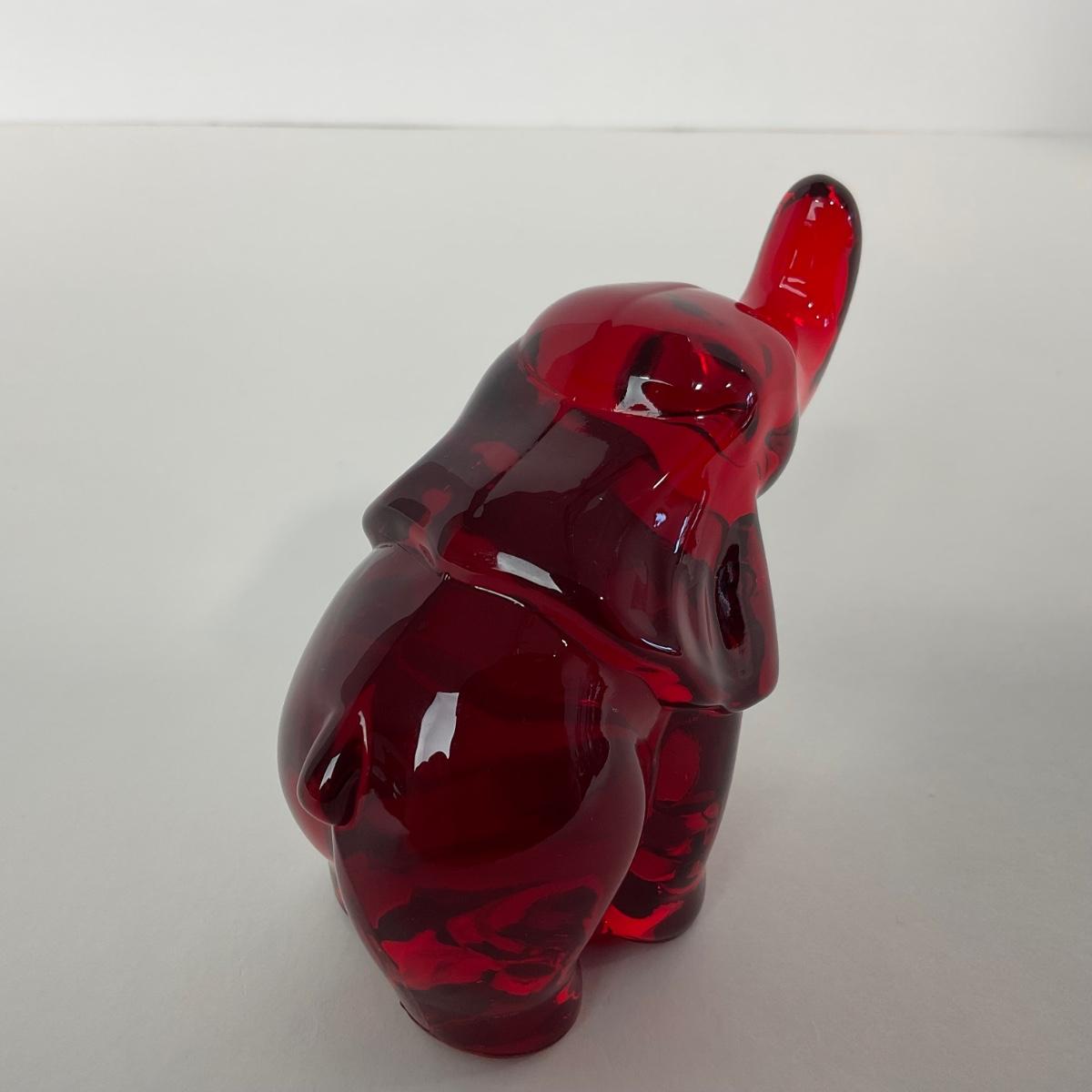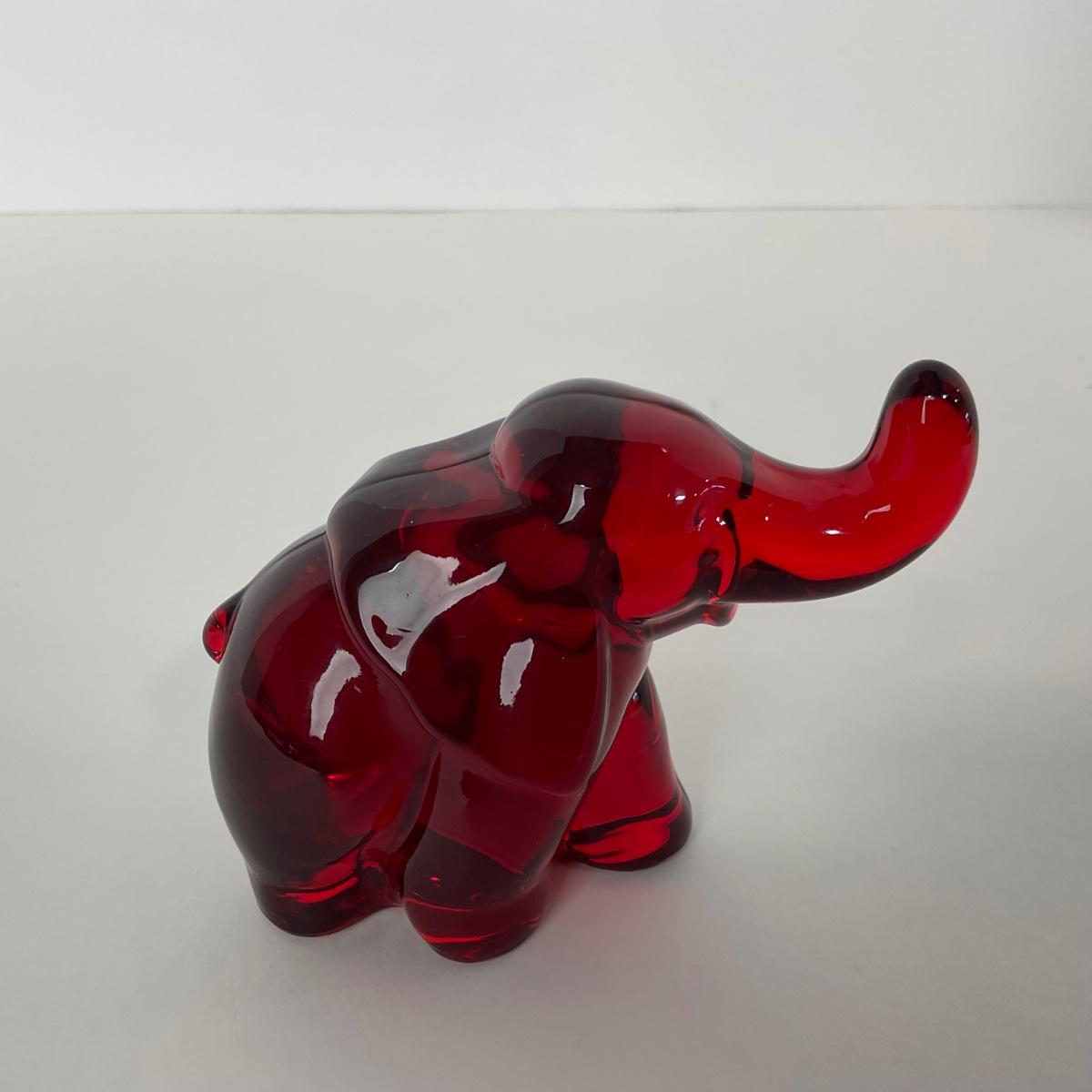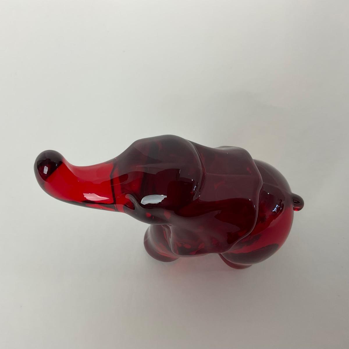 One Fenton Mosser ruby red elephant figure. 4 inches long by 3 inches tall. This piece has no damage, and appears to be in great shape with no visable chips, cracks, or broken pieces. Please see photos for details and condition. Any condition statement is given as a courtesy to a client, is an opinion, and should not be treated as a statement of fact. Reference to condition written, oral or within a condition report shall not be regarded as a full account of condition and may not include all defects, alterations, or restorations. Absence of a condition report does not imply a lot is flawless or lacking imperfections or damage. Katherine’s Auction & Appraisal Service shall have no responsibility for any error or omission. Returns shall not be accepted on the basis of condition. ::: Shipping is available on this lot. If you require shipping you must let us know at the close of the auction. We will coordinate with you after the item has been won. Shipping fees will include insurance up to or exceeding the value of all items being mailed. If you have any questions regarding this lot please contact the auctioneer either via this website, by direct email or by phone. PICK UP TIMES and other important information can be found in the TERMS and DESCRIPTION of the auction. Please take a look for pertinent information. Thanks!