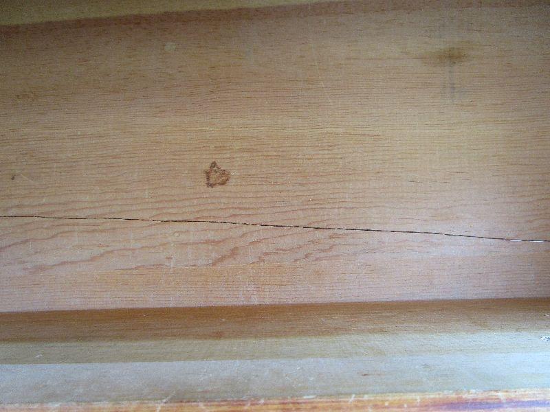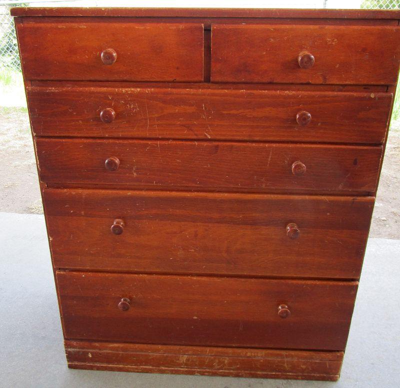 Five drawer dresser 32"x26 1/8" x 15"; Bottom drawer has small crack but still usable