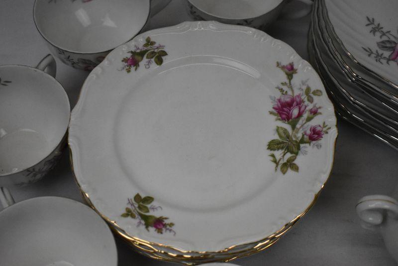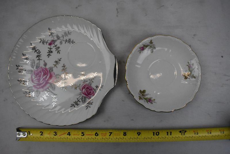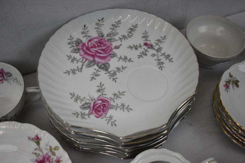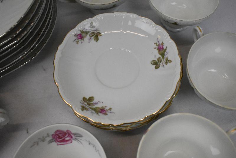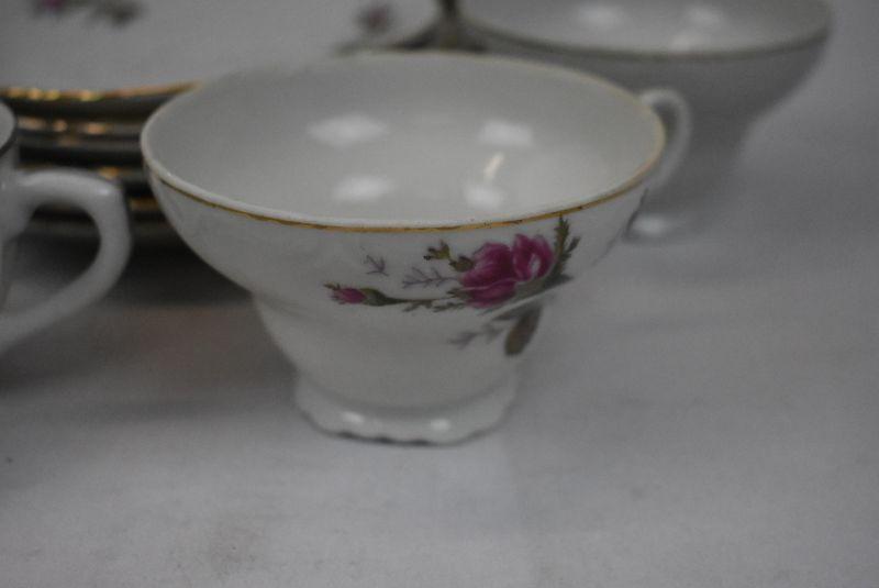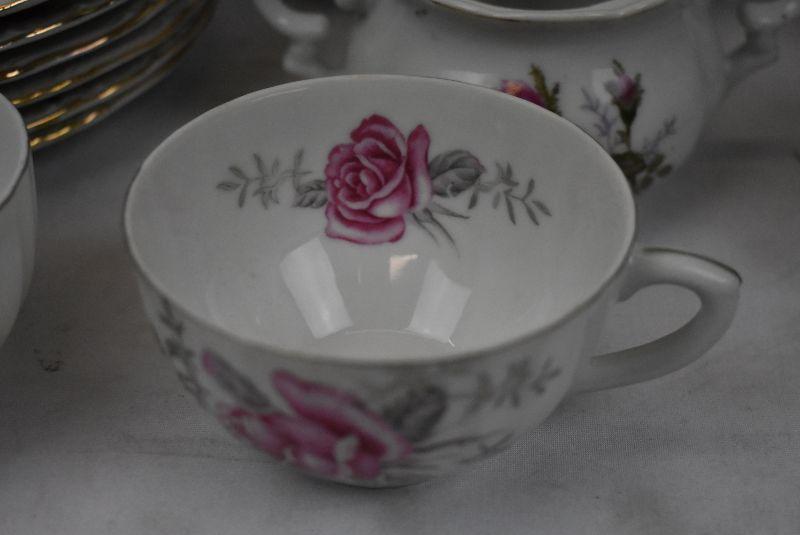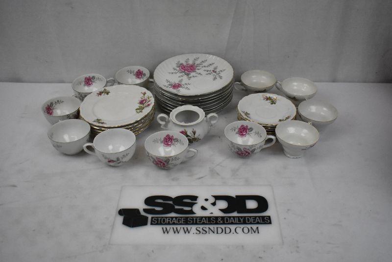 32pc Floral China Tea Set; 8 Large, 6 Small, 6 Cup Plates, 11 Cups, 1 Sugar - Used