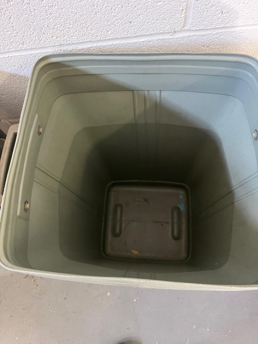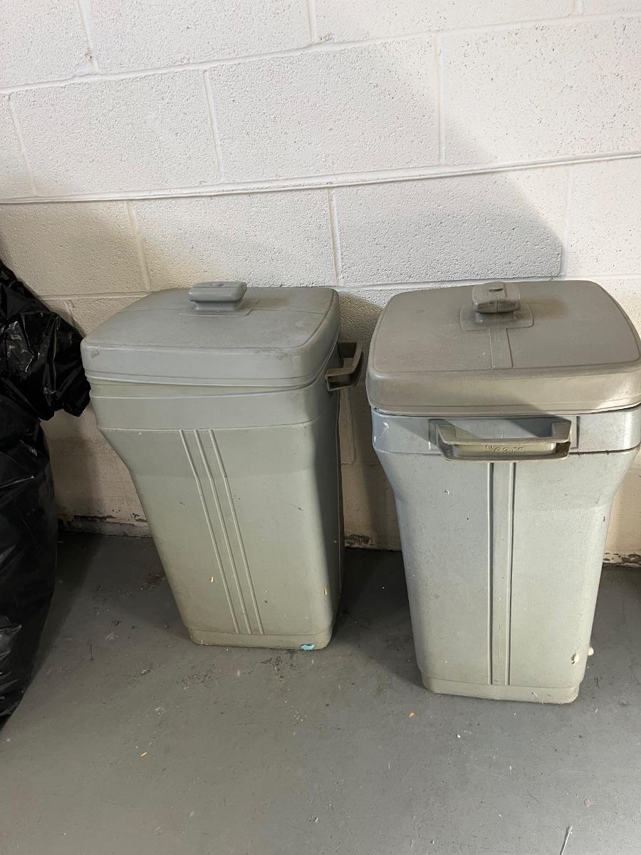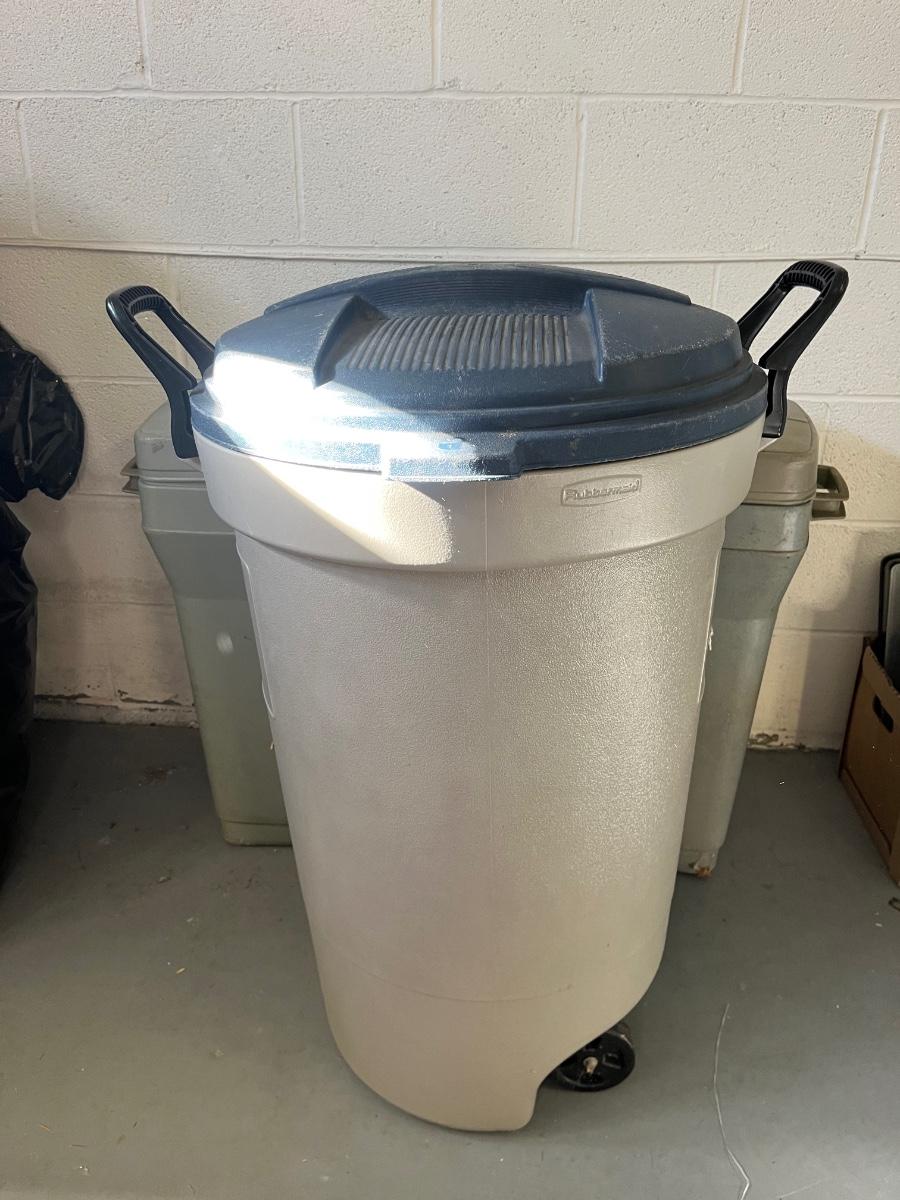 32 Gallon Rubbermaid Wheeled Garbage can & Two Sears Garbage Cans (G-MG)