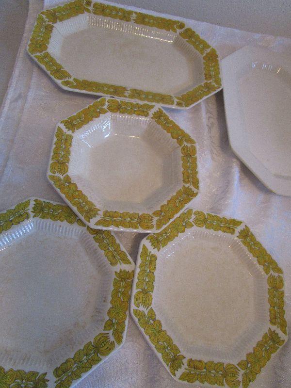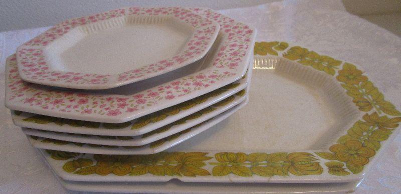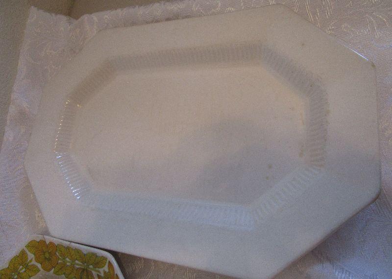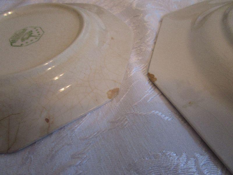Two Platters 9"x13"; one bowl 8", three 8" plates, one 6.5" plate; please see pictures for condition