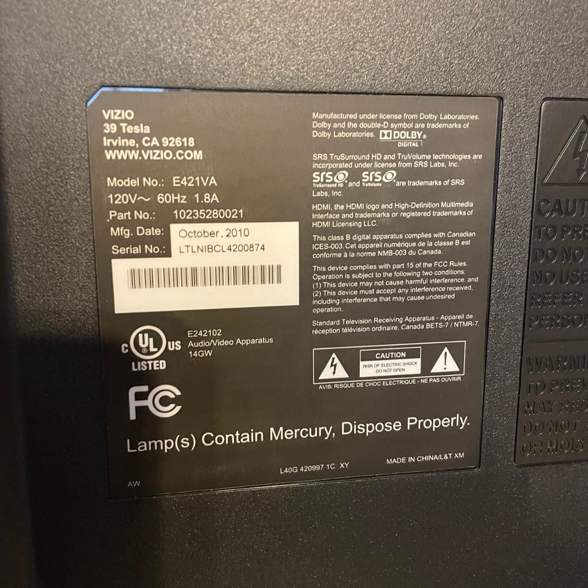 Lot contains a 42” Vizio LCD TV model E421VA and 32” Insignia LED TV model NS-32D311NA17. The Vizio powers on when plugged in, but it doesn’t come with a remote. The Insignia TV powers on with remote and also on the device itself. This tv has two HDMI and one USB ports and other A/V ports. Both screens do not appear to have any blemishes and they each have feet mounts and wall mount capability. See images. Local pick up only.