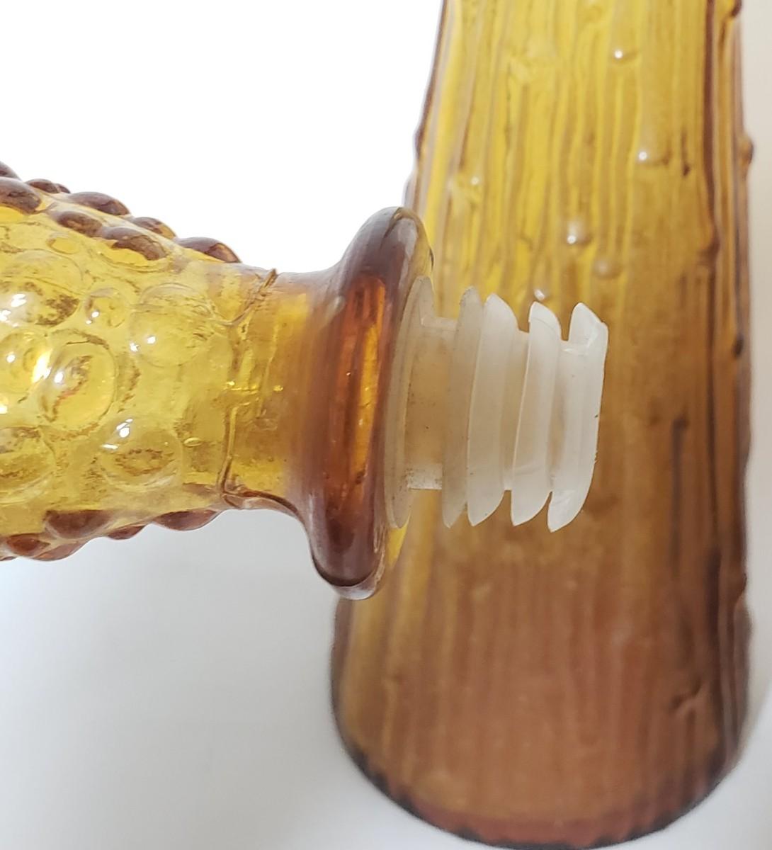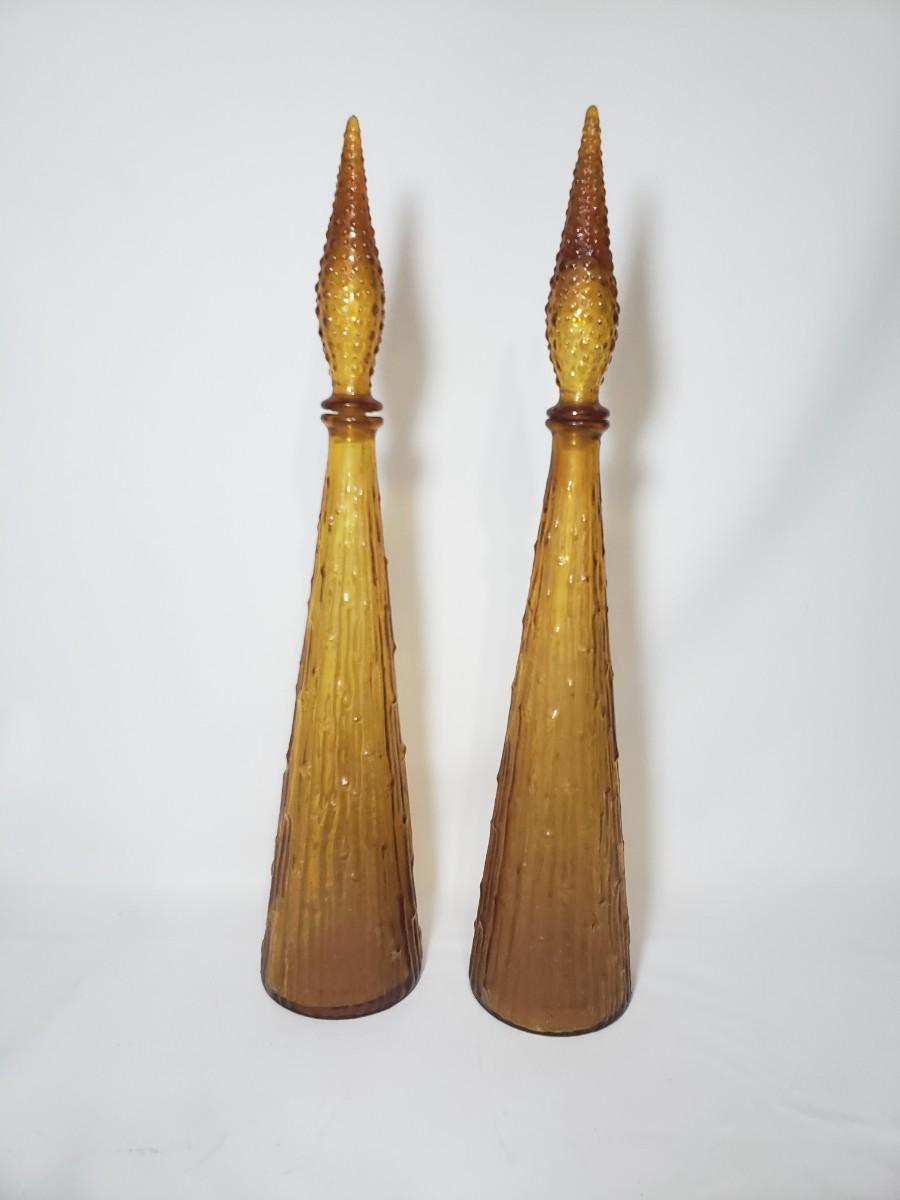 Vintage Italian Glass Decanters (genie bottles) wax drip bottles with original bubble stoppers. Amber colored and 22" tall.