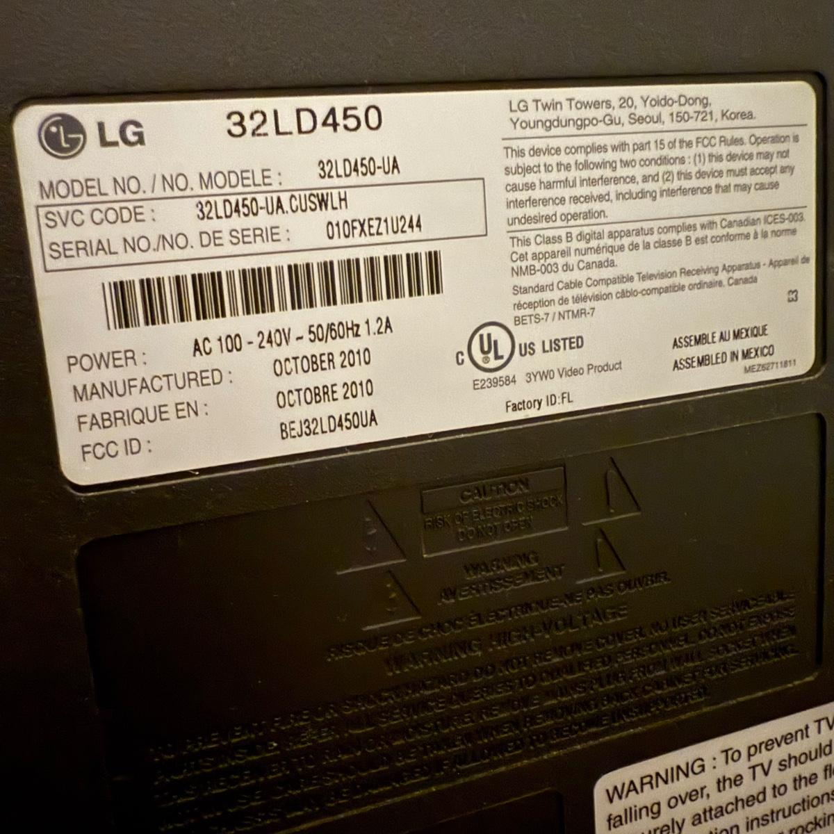 32” LG TV with Remote and Surge Protector (GB-BM)