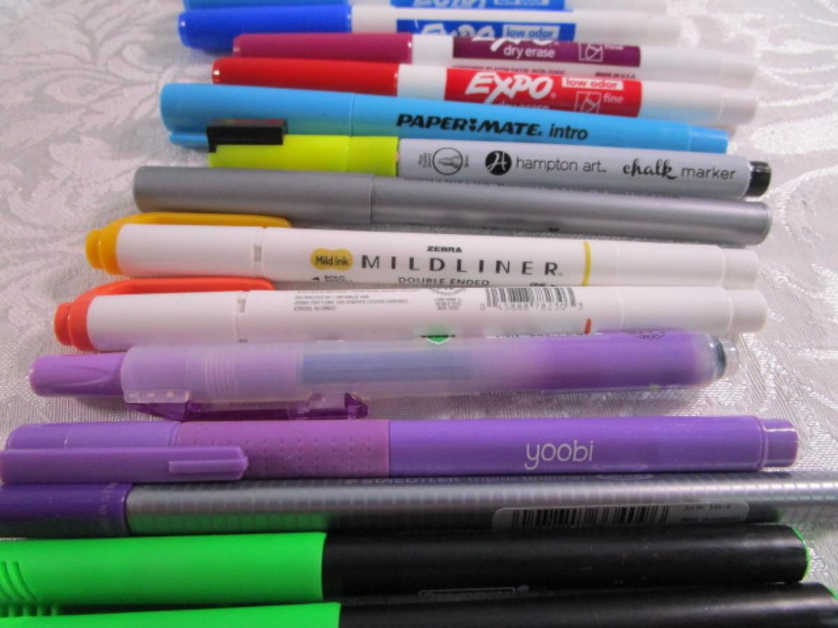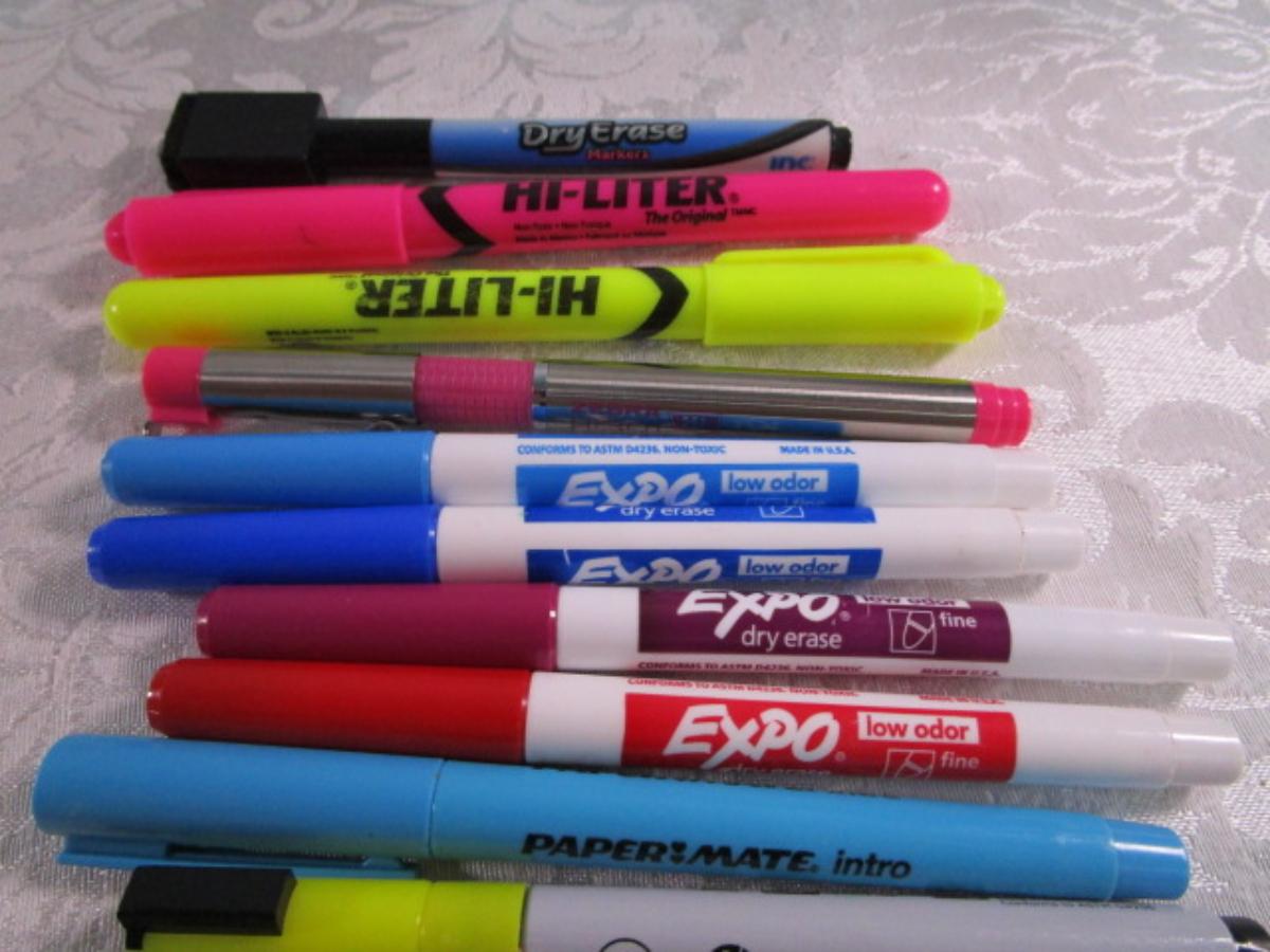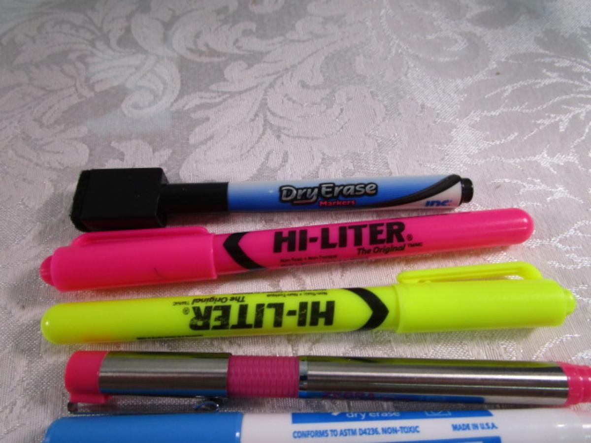 Expo, Highlighter, Bic, etc., Various styles & colors, all work well
