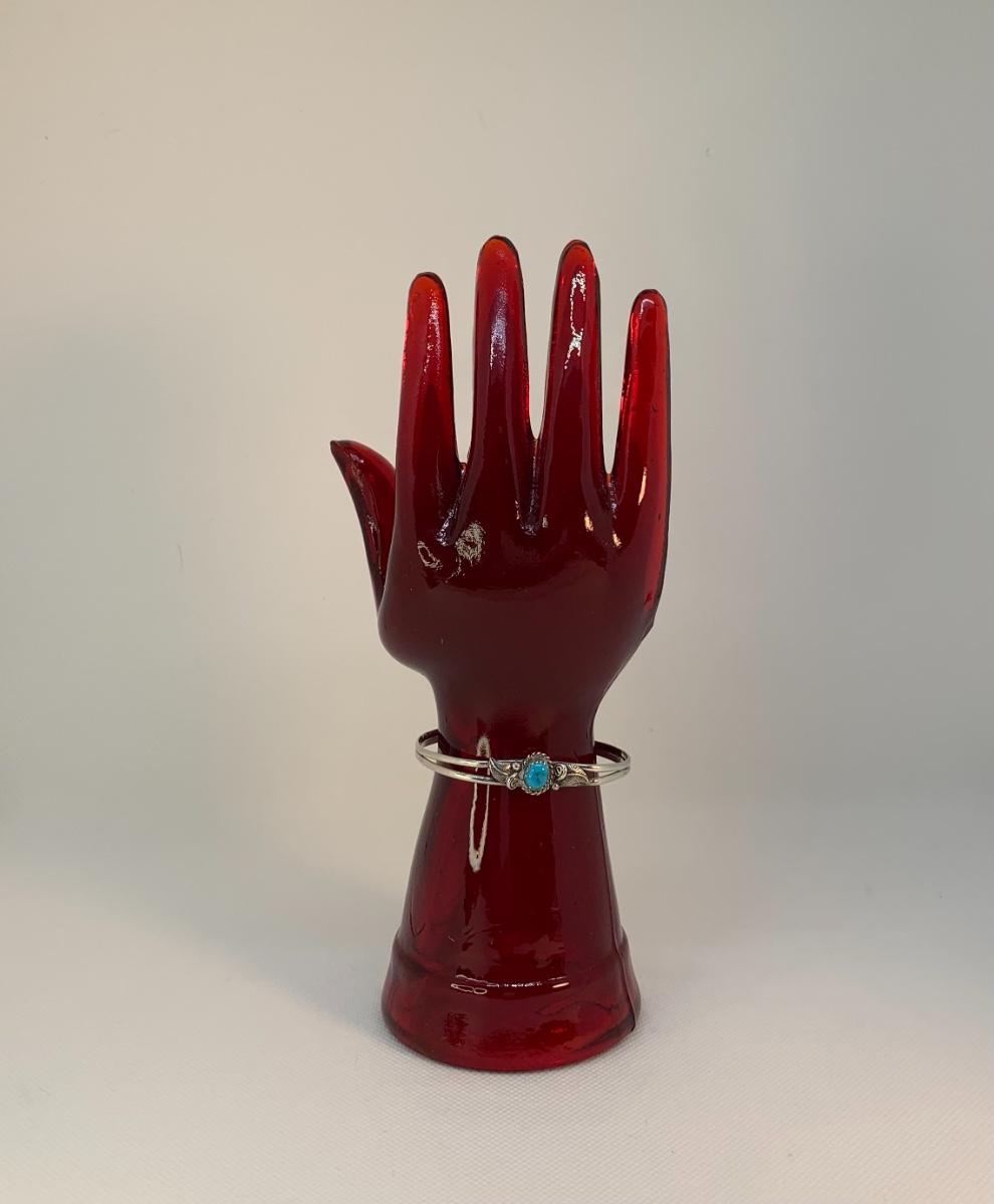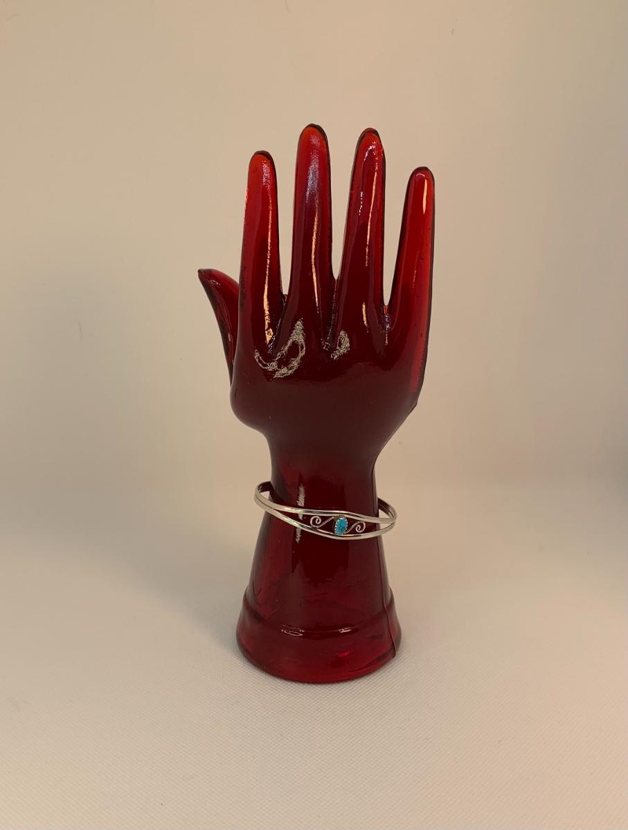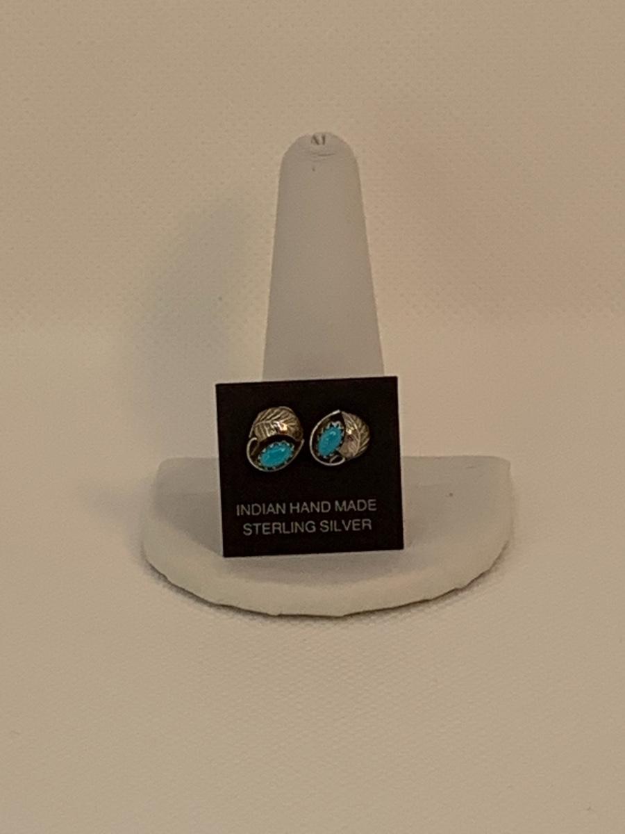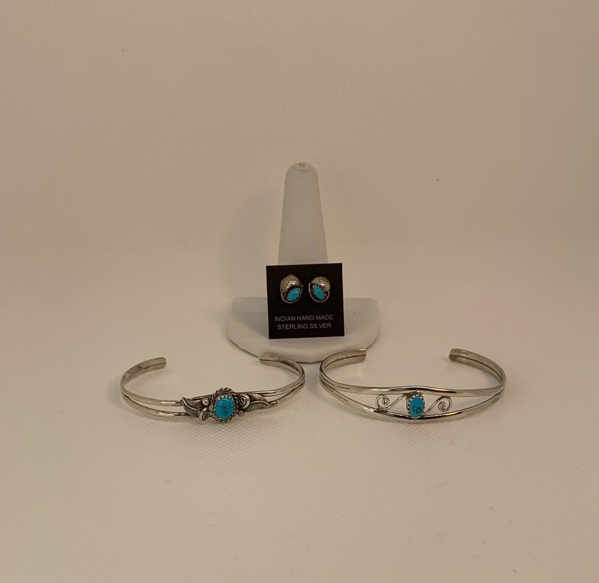 Native American Sterling Silver pierced Earring posts and two cuff Bracelets with center Turquoise Gemstones