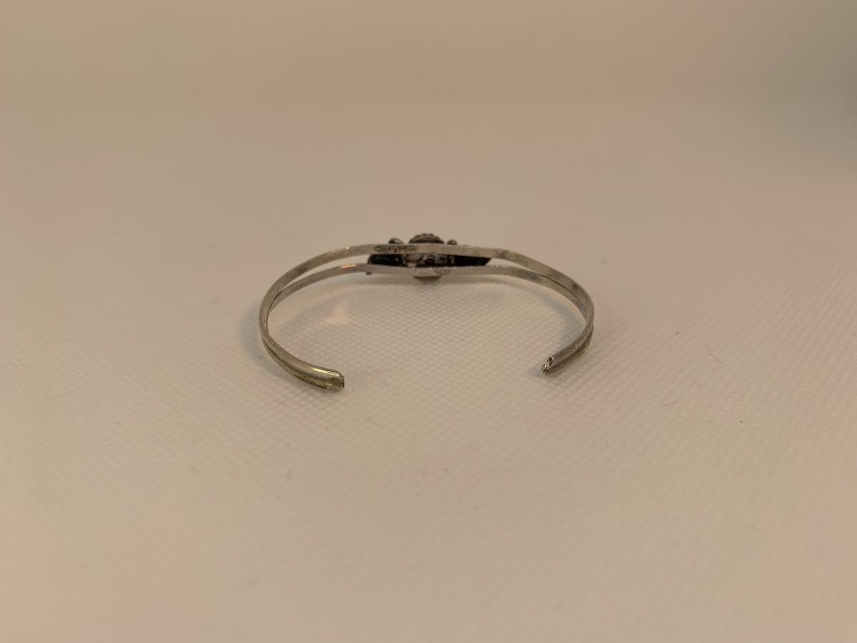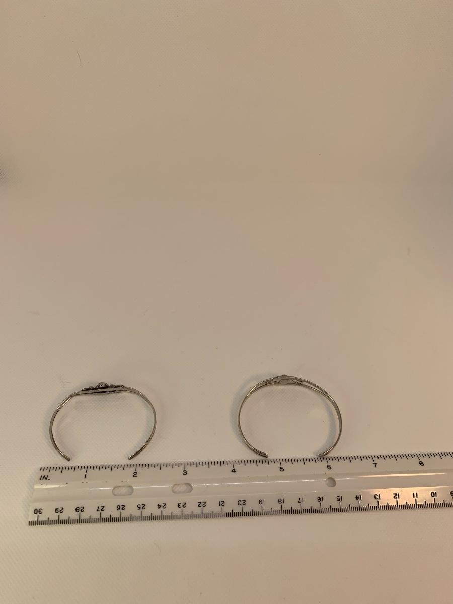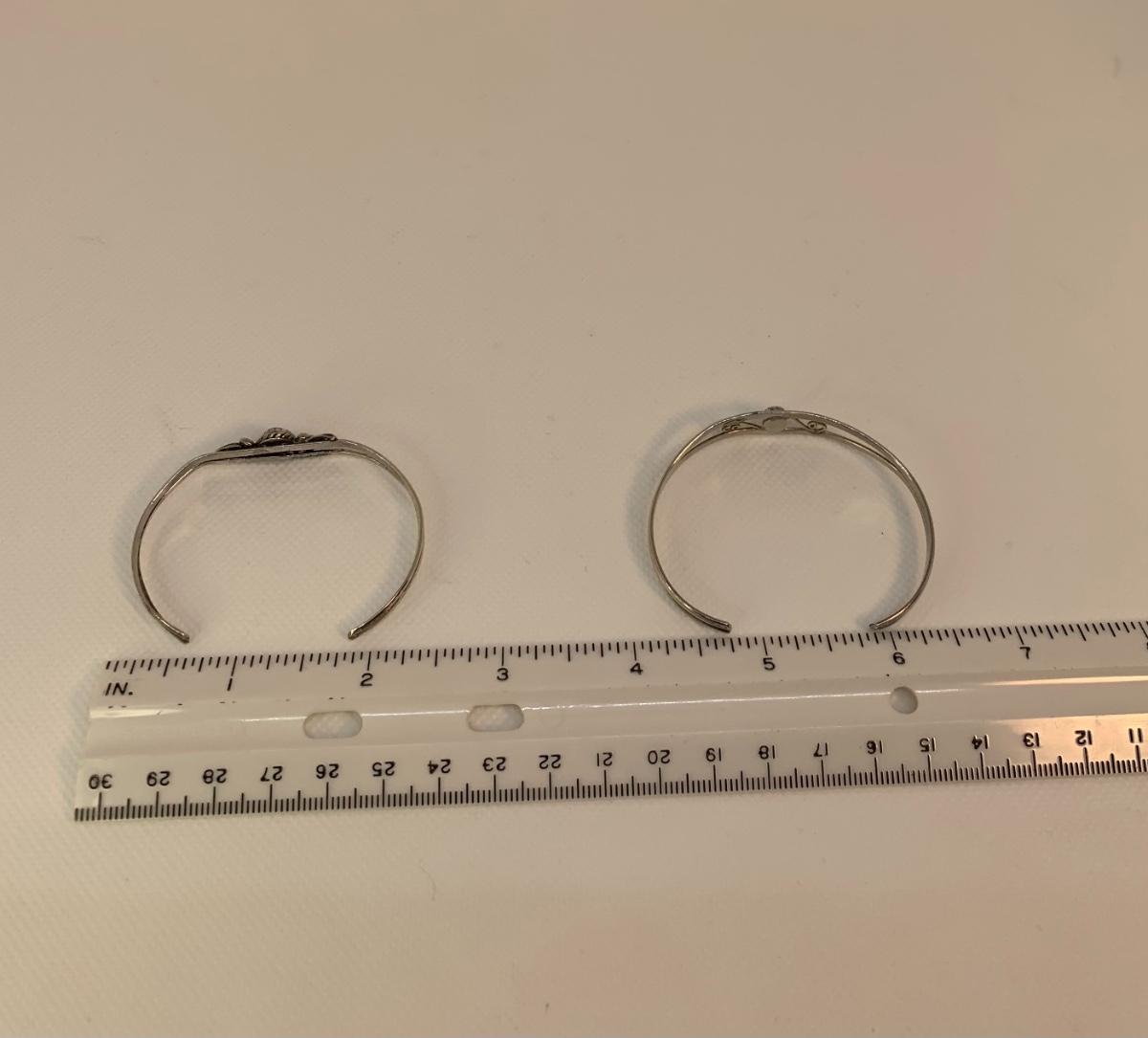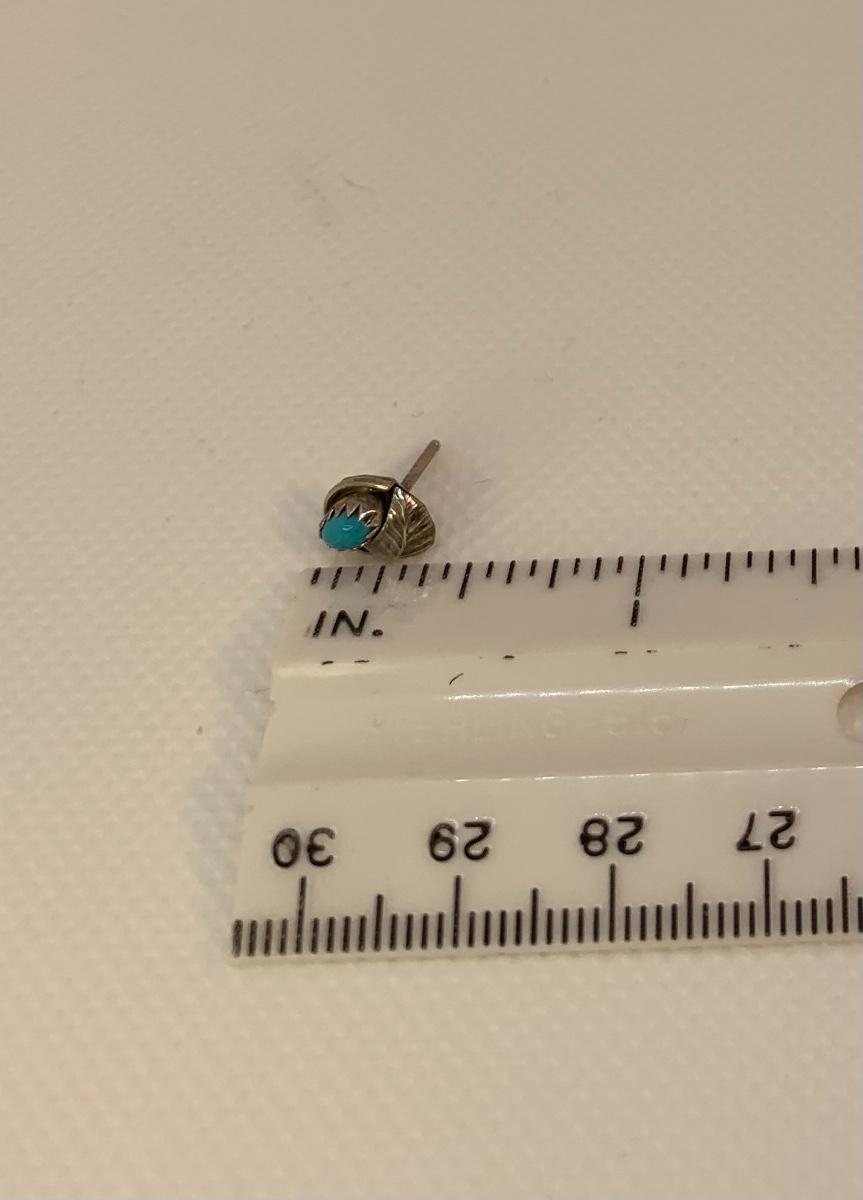 32: Native American Sterling Silver  pierced Earring posts and two cuff Bracelets with center Turquoise  Gemstones