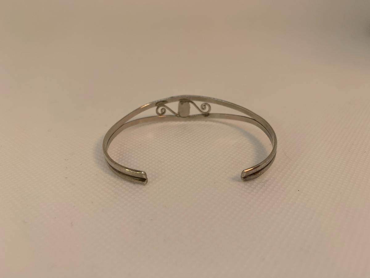 32: Native American Sterling Silver pierced Earring posts and two cuff Bracelets with center Turquoise Gemstones