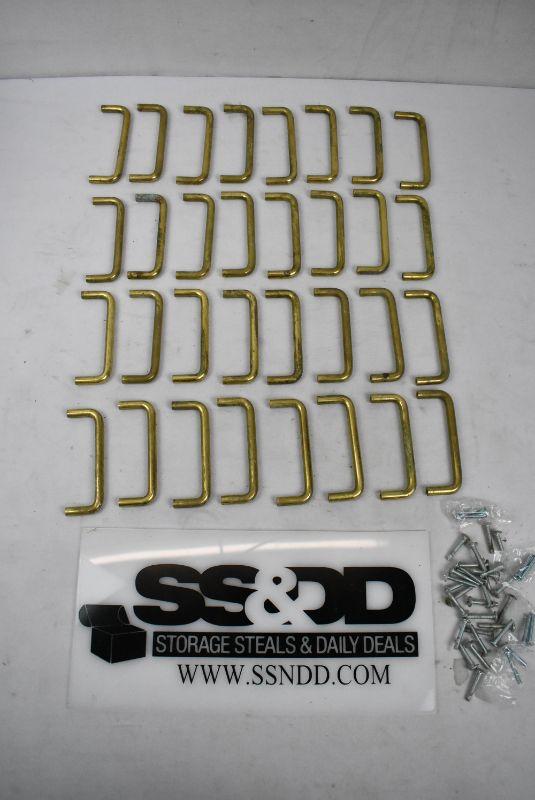 32 pc Vintage Brass Handles. Includes some hardware. 3.5" between screws