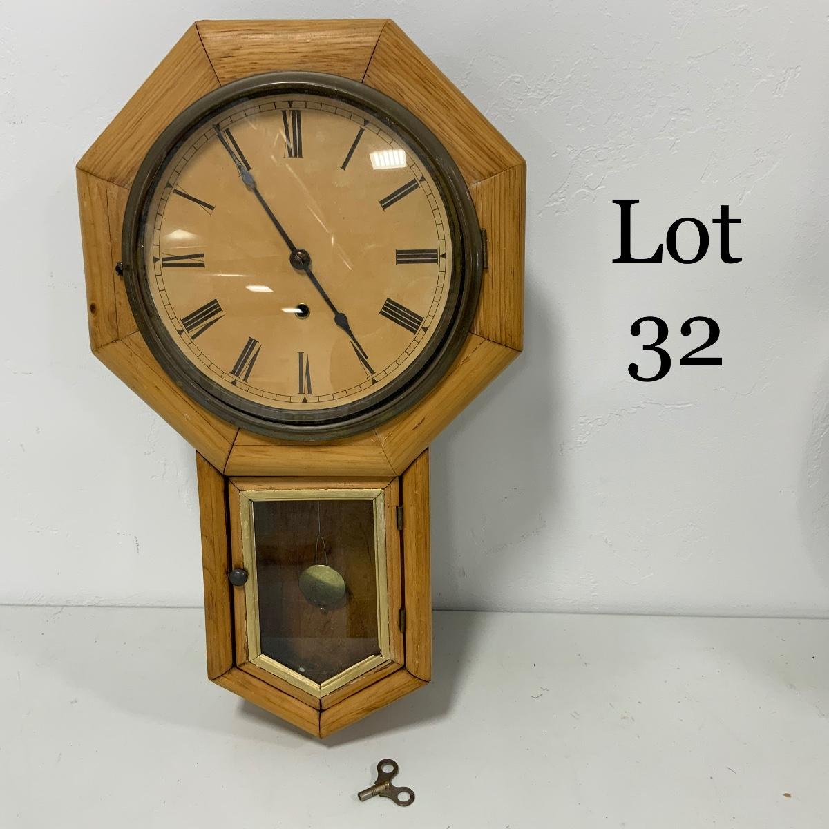 .32. Pine | Wm. Gilbert | 8-Day 10 Inch Octagon Clock | c. 1900