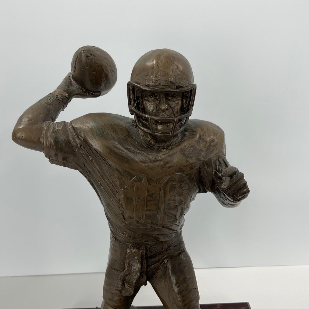 One large heavy Joe Montana retirement sculpture 68/1995 10 inches by 15 inches. Please see photos for details and condition. ::: Shipping is available on this lot. If you require shipping you must let us know at the close of the auction. We will coordinate with you after the item has been won. Shipping fees will include insurance up to or exceeding the value of all items being mailed. If you have any questions regarding this lot please contact the auctioneer either via this website, by direct email or by phone. PICK UP TIMES and other important information can be found in the TERMS and DESCRIPTION of the auction. Please take a look for pertinent information. Thanks!