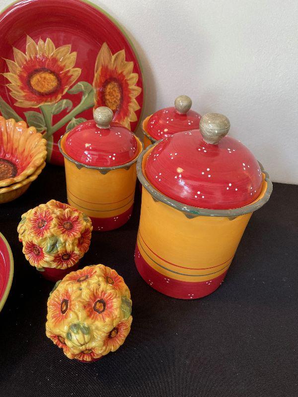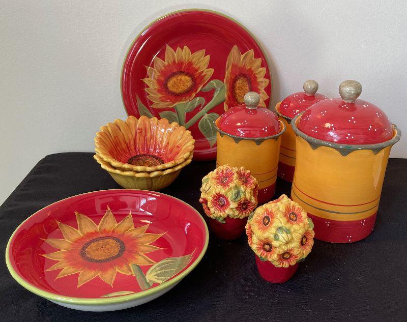 #32 Sunflower Serving Canister, Bowls, Platters