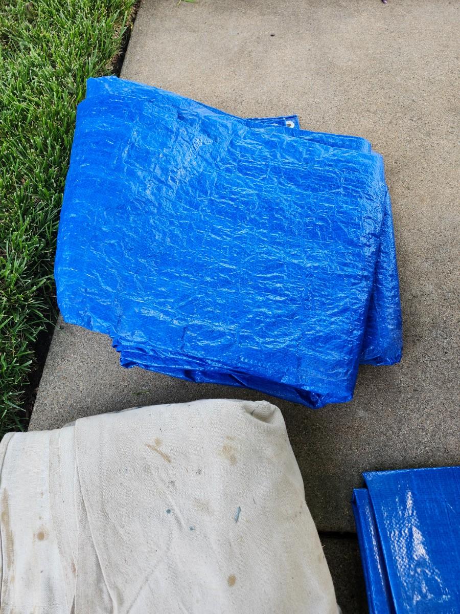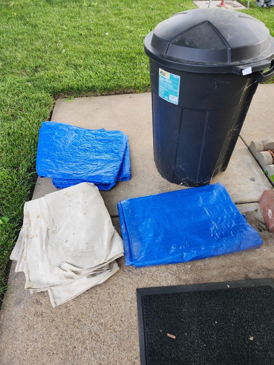 32 trash bin 2 tarps and paint tarp