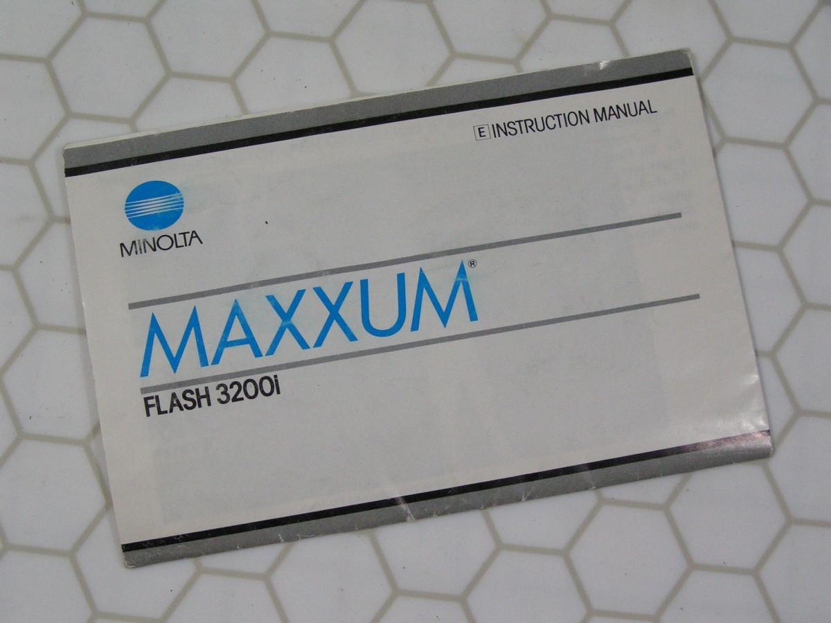 3200i flash unit for Minolta Maxxum ɑlpha & SONY ɑlpha digital cameras. Has ɑlpha style shoe mount. Fully automatic TTL metering when used with ɑlpha compatible cameras. w/carry case and OEM instructions. Tested OK, good working unit. Use 4 “AA” batteries, NOT included. Made in Japan SN:3571758