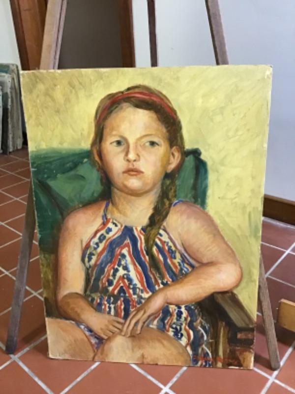 1 ) young girl sitting in the chair - on a board 18” W x 24” T