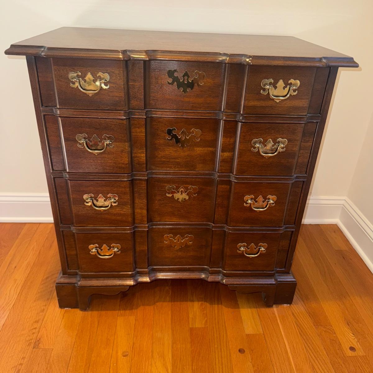 Vintage Georgian Design Mahogany Block Front Dresser, By Baker Furniture. Four drawers. Overall great shape
