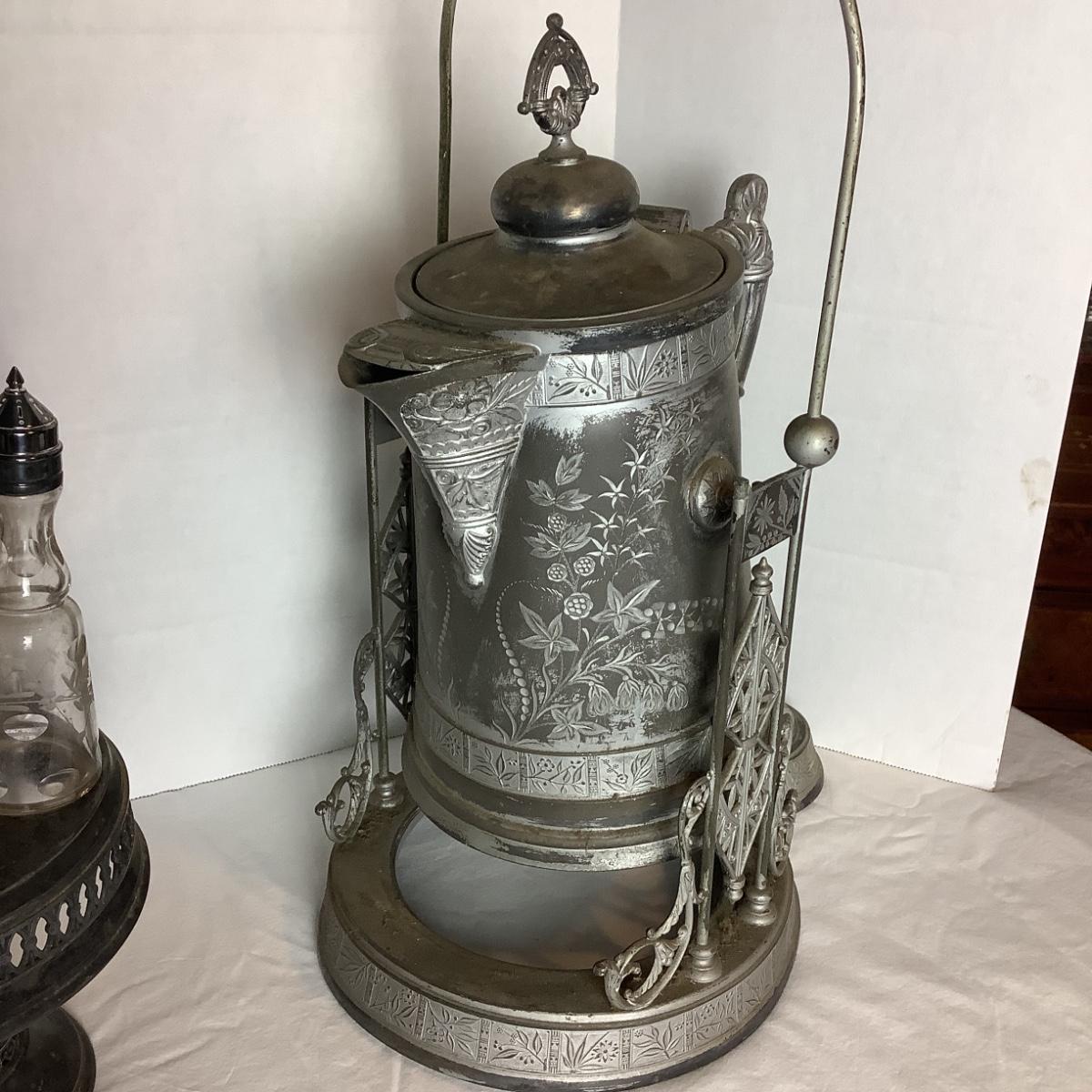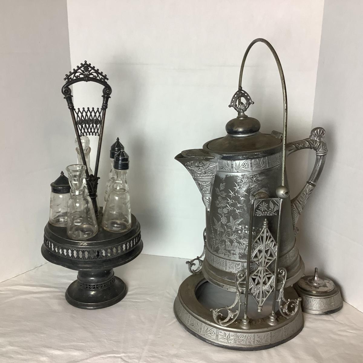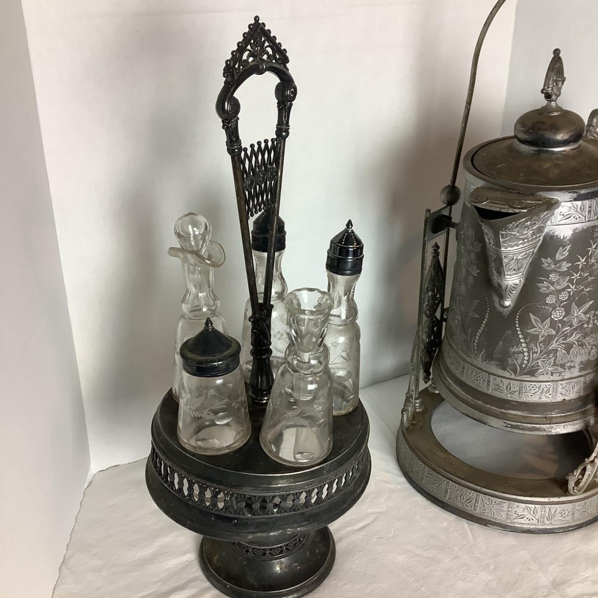 324 Antique Victorian Castor Set & Pair point Steel Plate Tilt Water Pitcher
