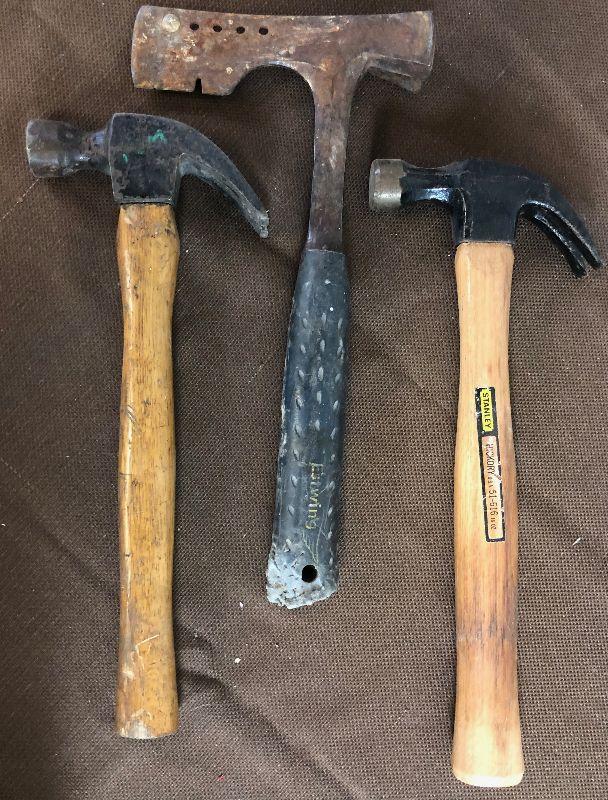 #324 Lot of Hammers: Ro1ofing,2 Carpenters w/ wood Handle
