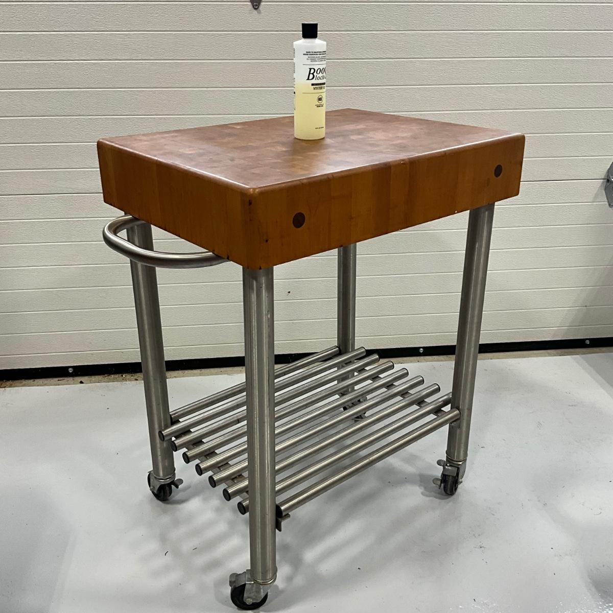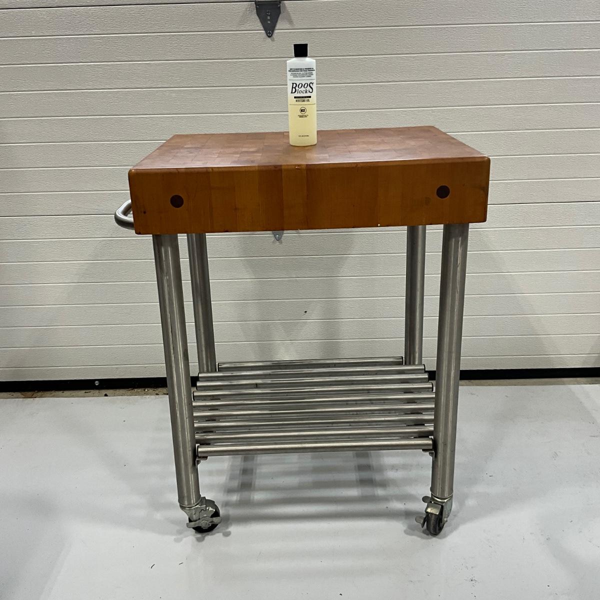325 Large BOOS Cucina Americana Wood and Stainless Steel Base Chopping Block On Wheels