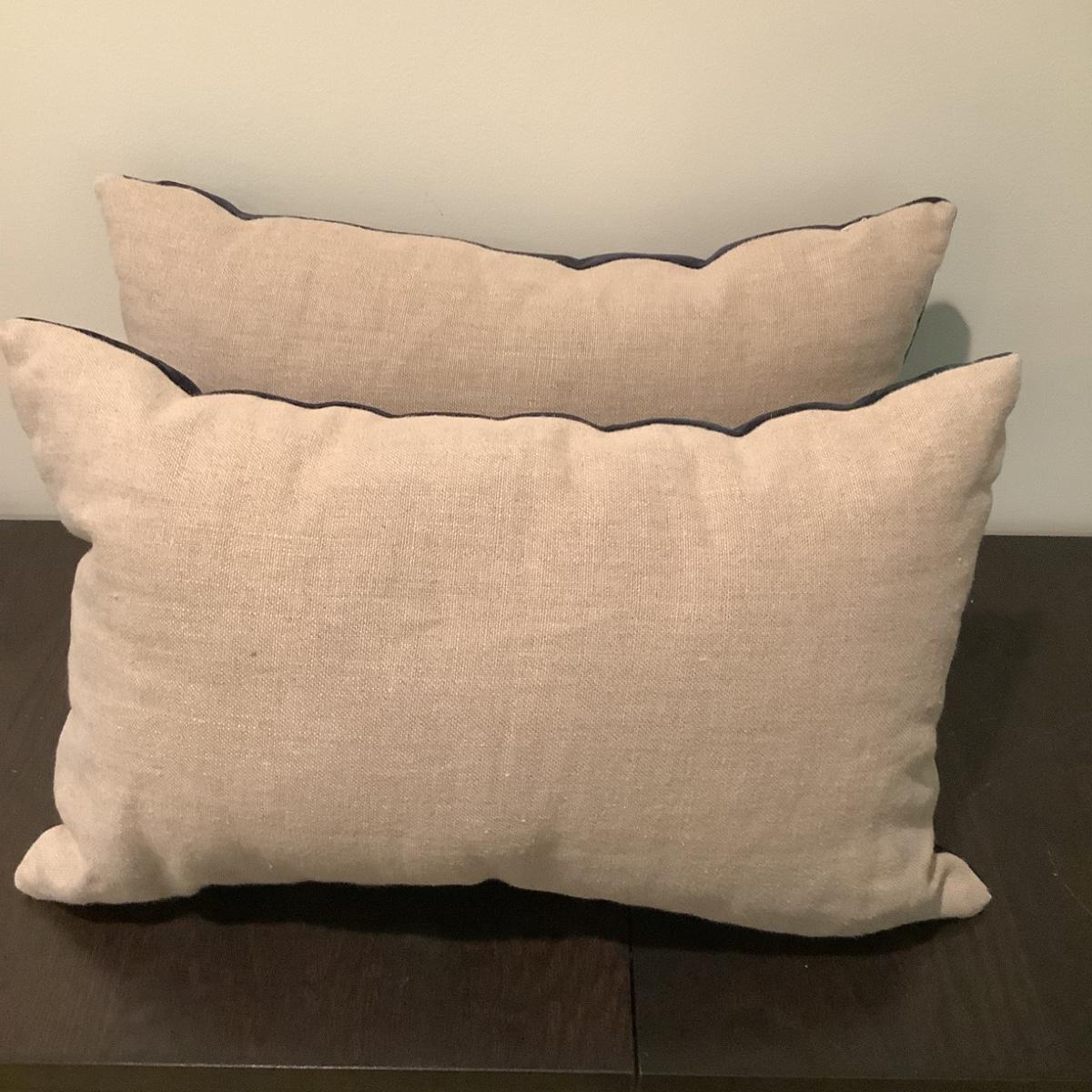 2 rectangle navy and oatmeal linen