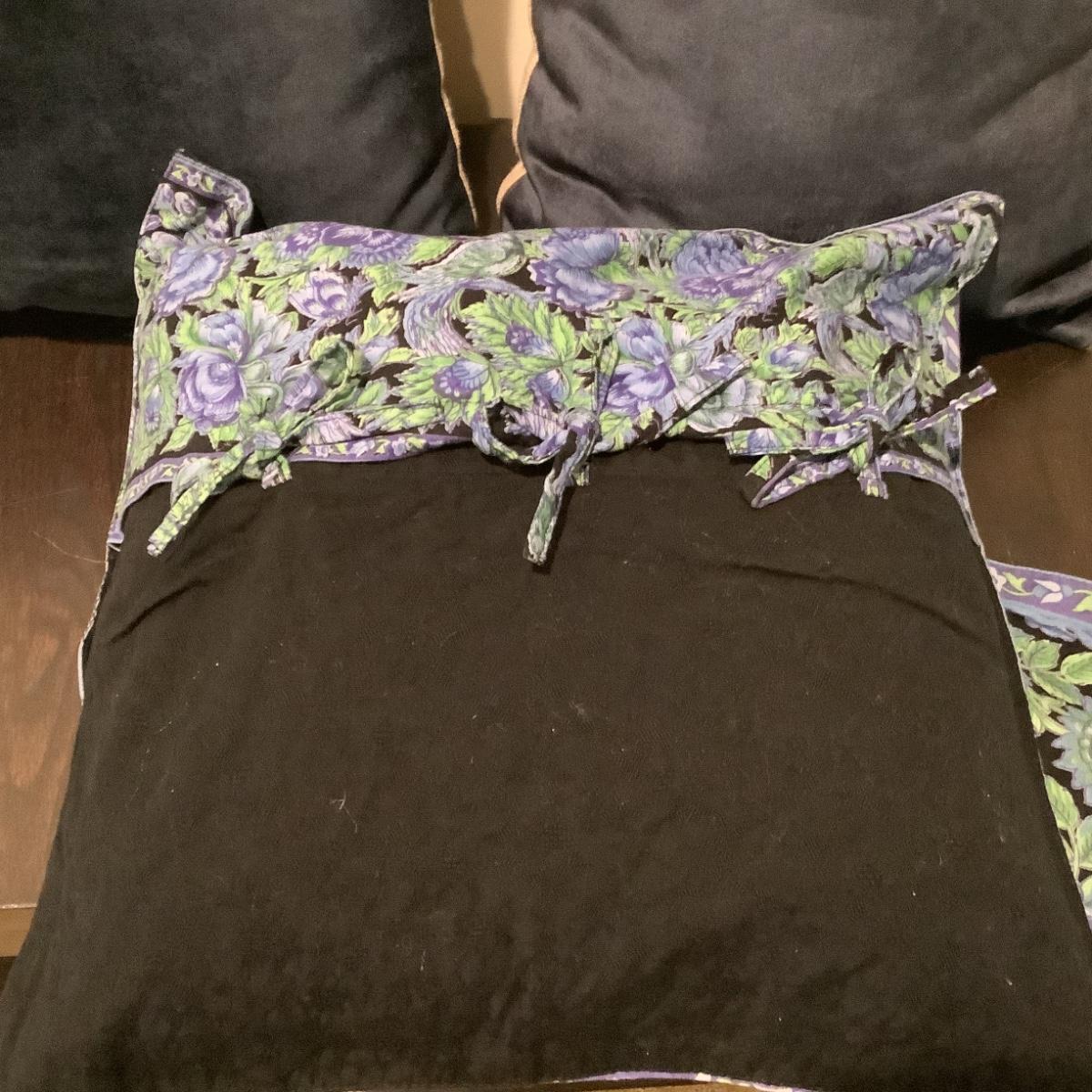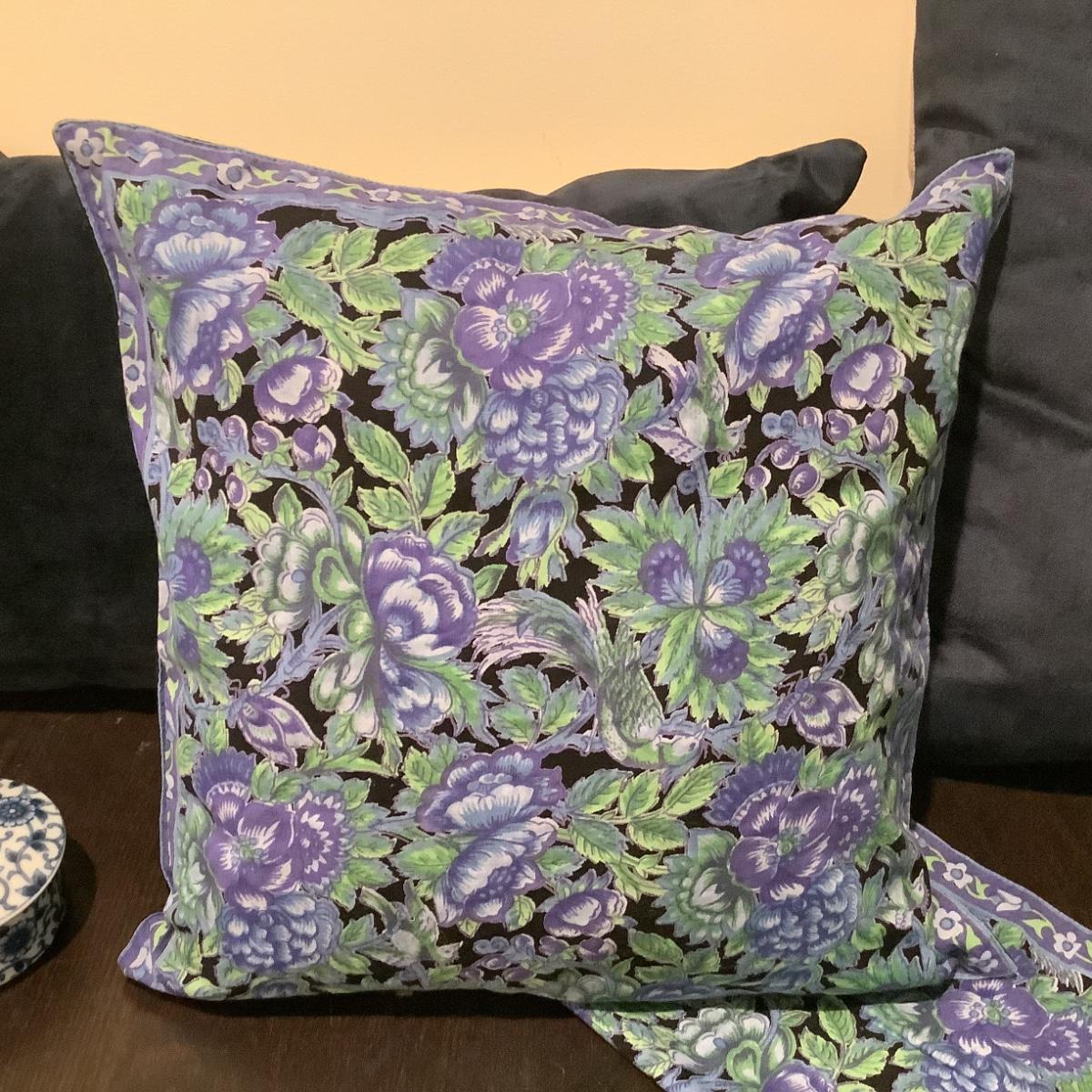 Two blue and green floral tie back pillow Covers measuring 15" square