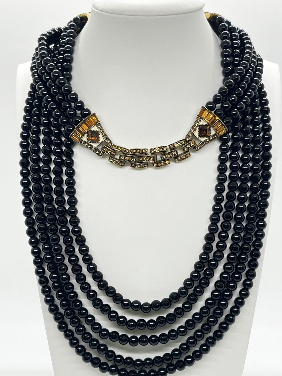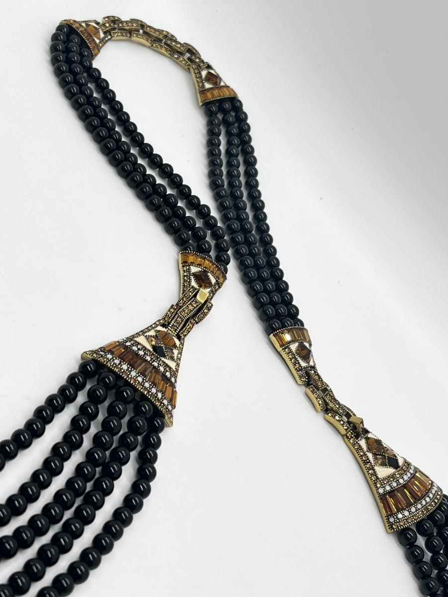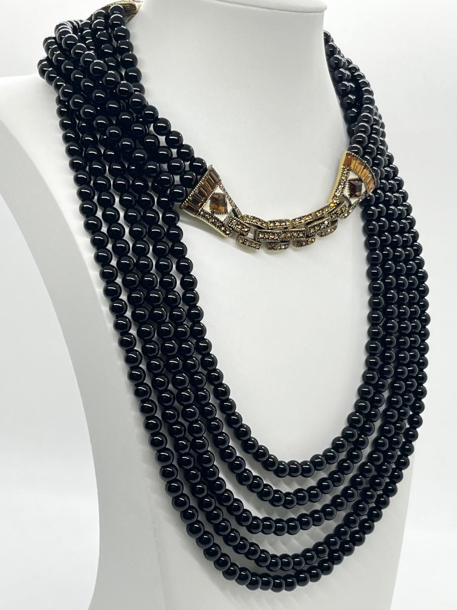 Lot 326J: Amazing Piece! Vintage Heidi Daus Crystal and Black Glass Beaded Multi-Use Necklace-34"