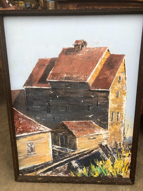 Vintage Barn Painting, artist unknown, 25 x 33.25 T