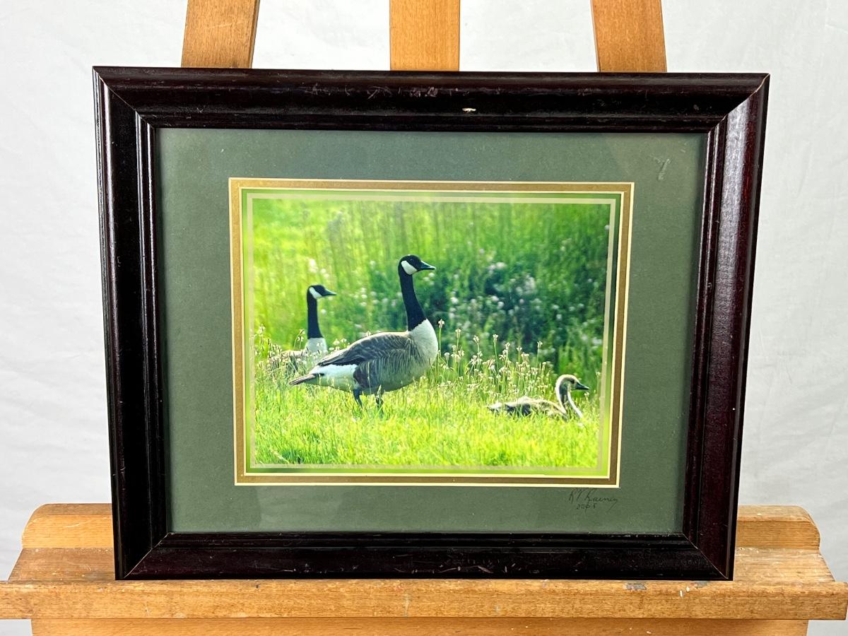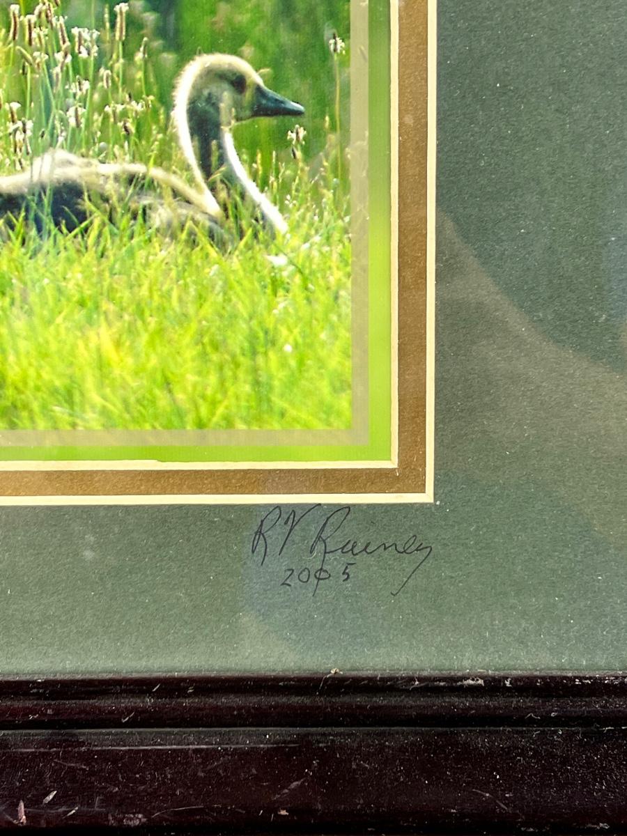 Photography by R.V. Rainey 2005 framed photo of geese. Measures 13 1/2" x 16 1/2"