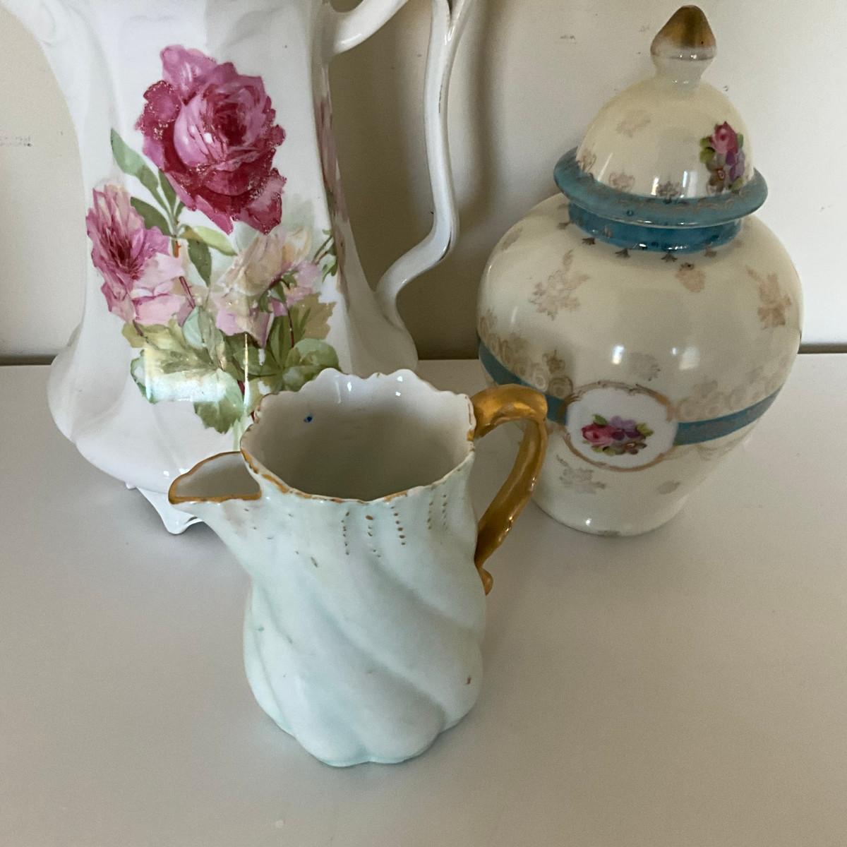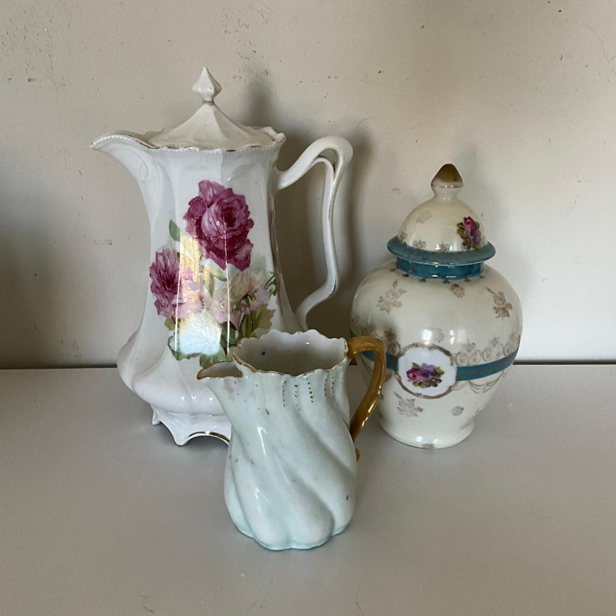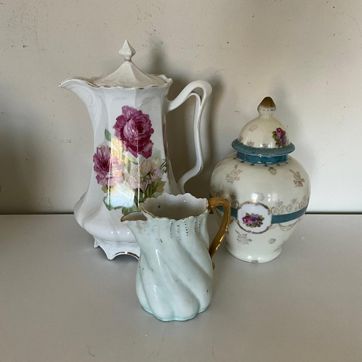 328 Set of Three Vintage Floral Porcelain Tea Items