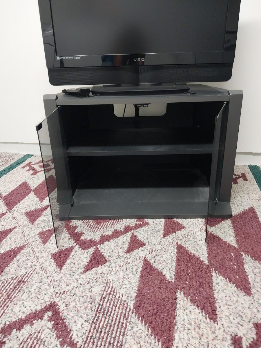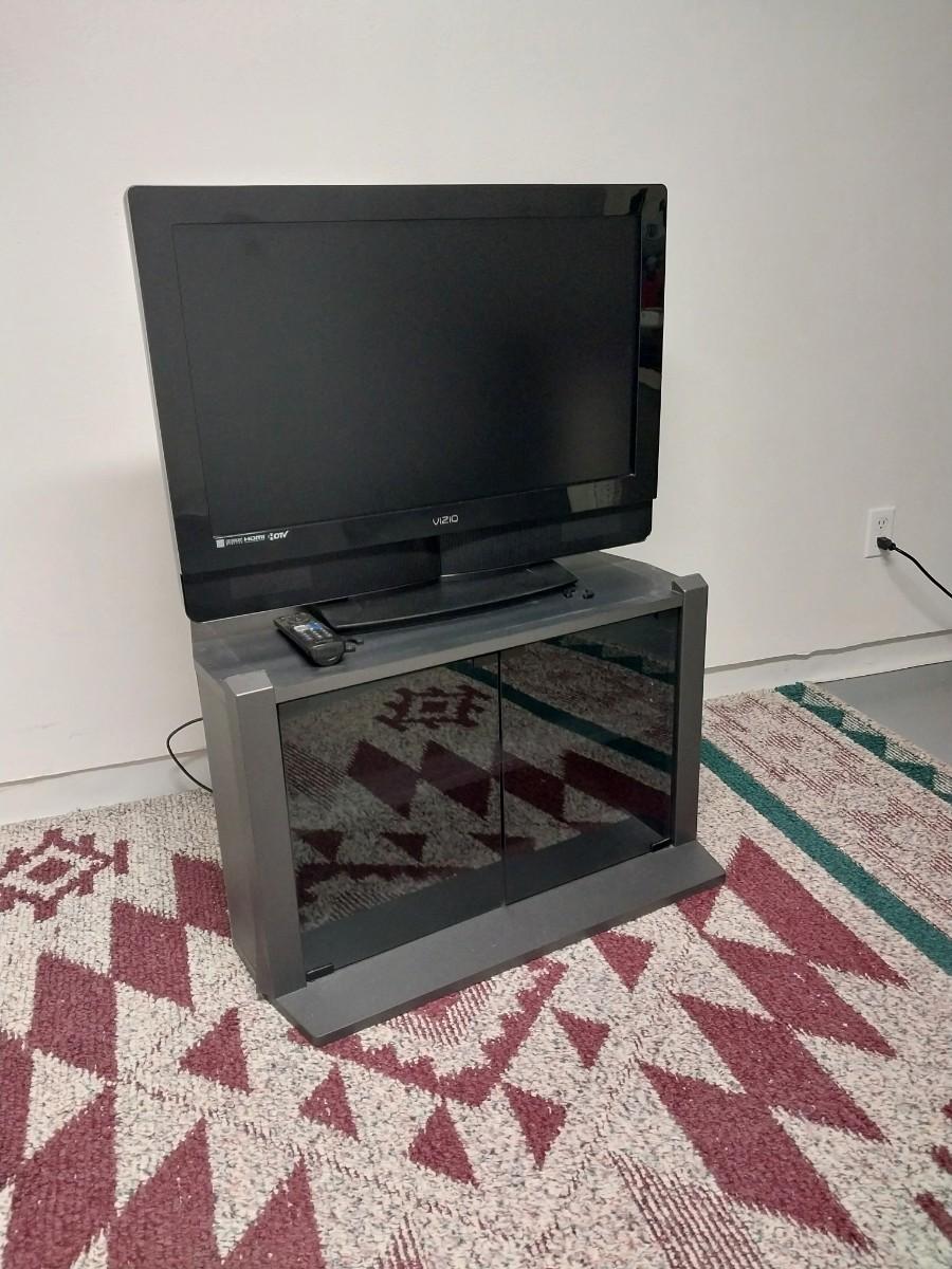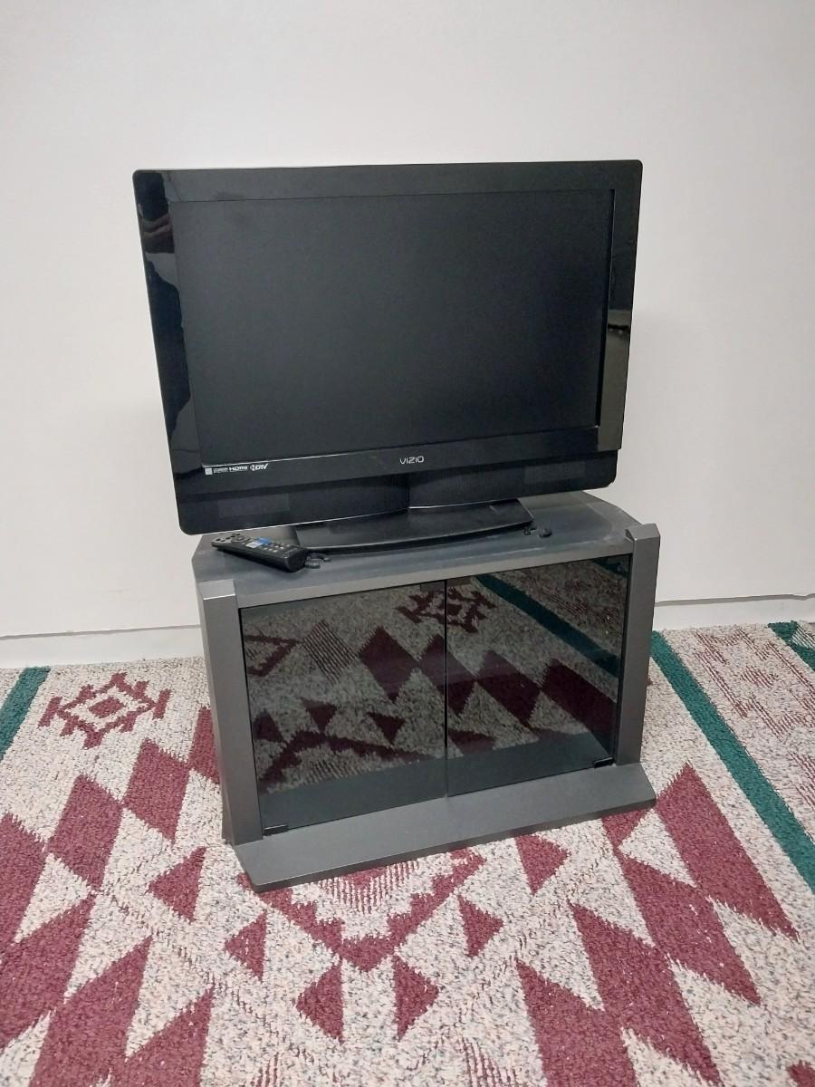 32"XIZIO WITH REMOTE AND GLASS FRONT STAND WITH STORAGE