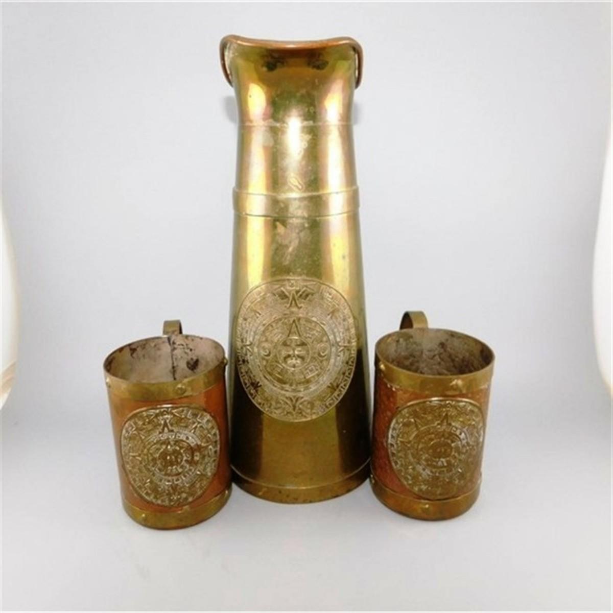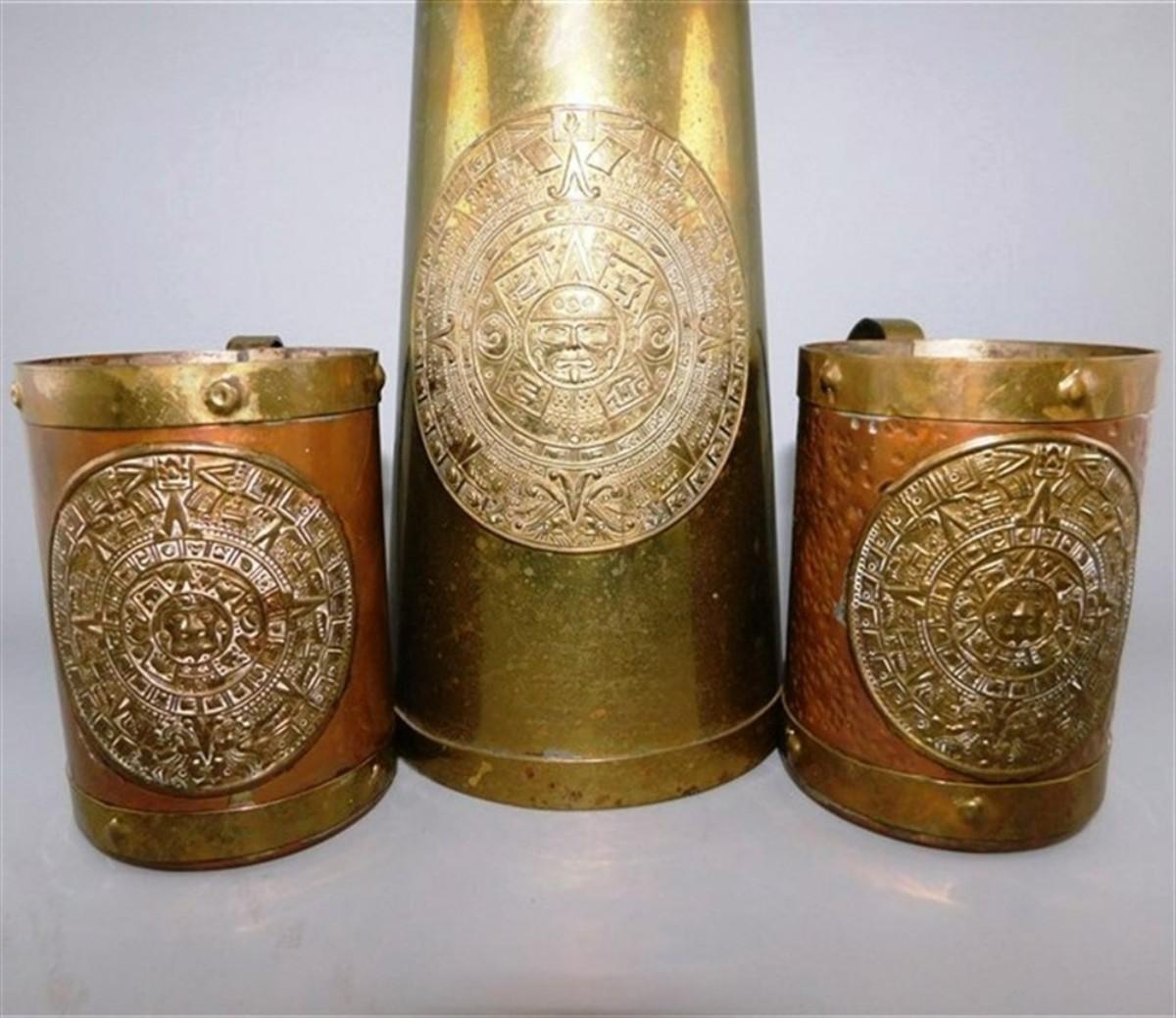 33 12" Mayan Calendar Pitcher and 2 Mugs