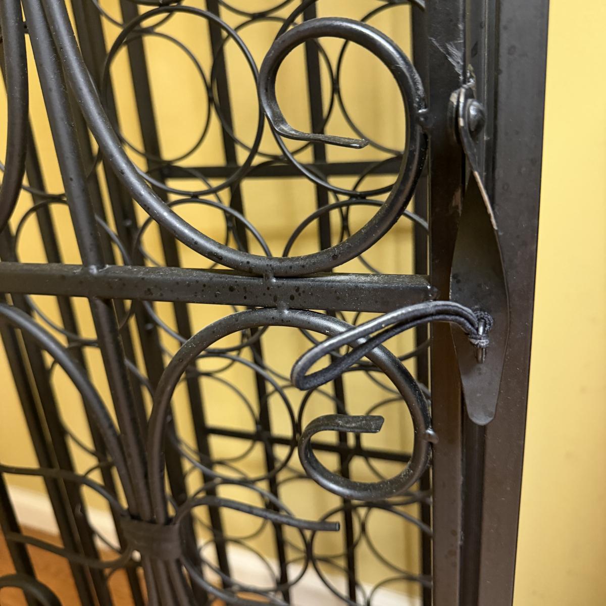 Lot includes a 33 bottle metal wine rack that measures 15” x 14” x 54”H.