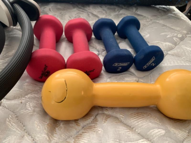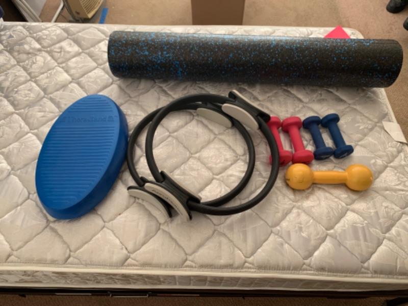 Exercise equipment, pilates rings, weights, etc.
