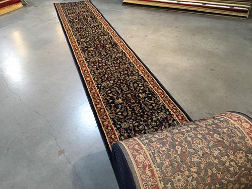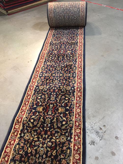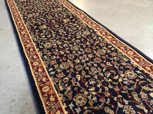 2 Feet 7 Inches Wide Roll Runner 33 Foot Long Runner preimim detailed Classic Persian Mahal Design. Navy , Rust and Multi Accent Colors polypropylen Pile made in Turkey.