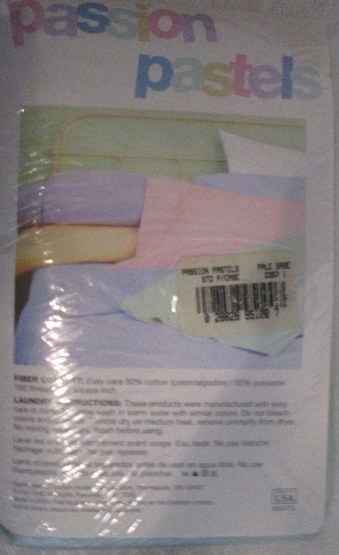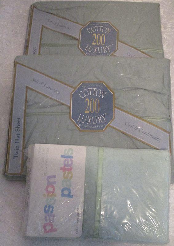 Cotton Luxury by Springs, Two twin size flat sheets; 60% combed cotton 40% Polyester, finished size 66"x96", Sage; Passion Pastels by Dayton Hudson two standard pillowcases, Finished size 20"x30"Pale sage