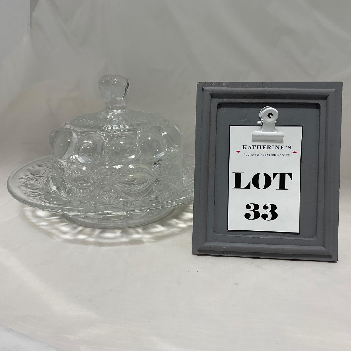 -33- Heavy Clear Glass | Covered Butter Dish