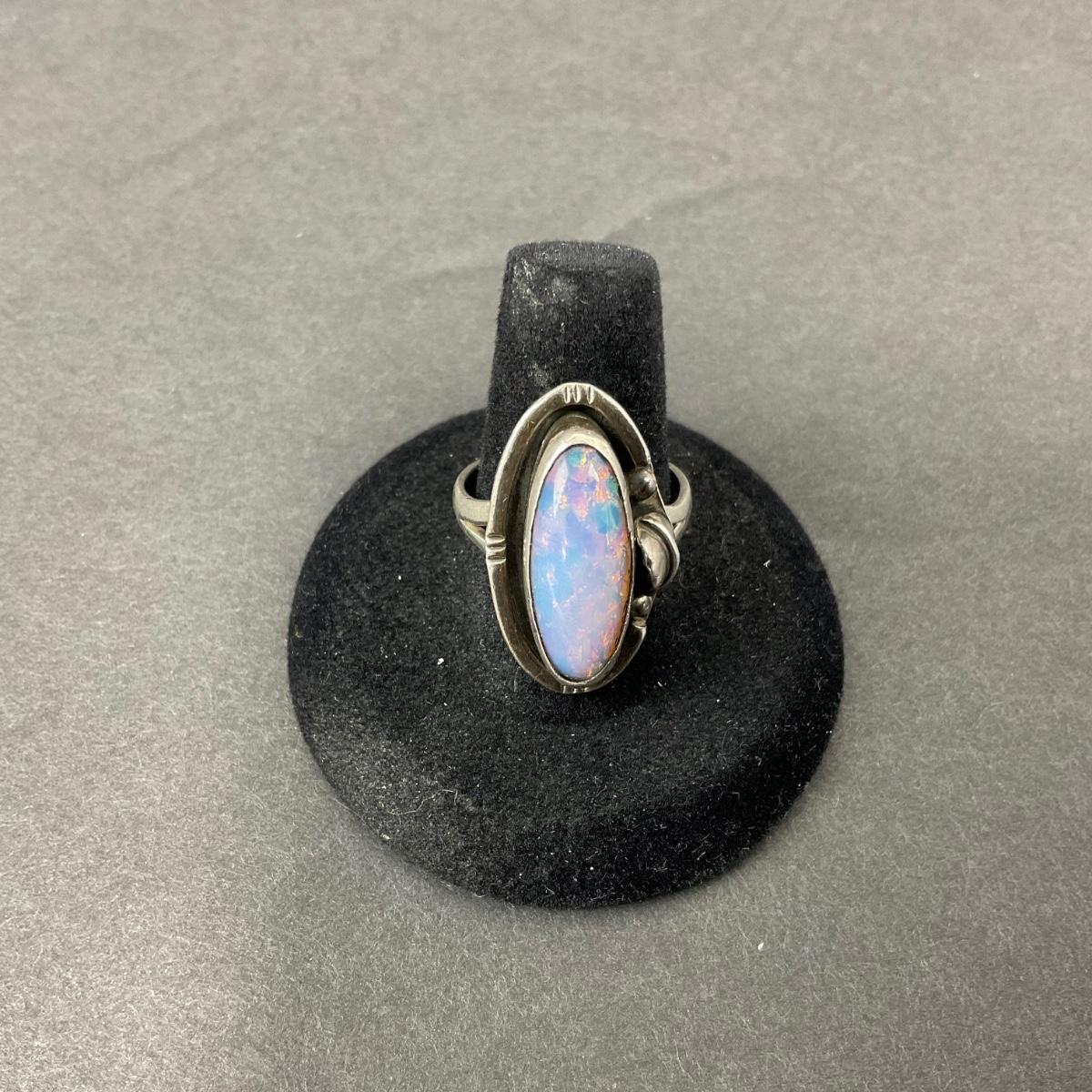 One Navajo sterling silver artist signed ring. This ring is a size 7 3/4. Please see photos for details and condition. Any condition statement is given as a courtesy to a client, is an opinion, and should not be treated as a statement of fact. Reference to condition written, oral or within a condition report shall not be regarded as a full account of condition and may not include all defects, alterations, or restorations. Absence of a condition report does not imply a lot is flawless or lacking imperfections or damage. Katherine’s Auction & Appraisal Service shall have no responsibility for any error or omission. Returns shall not be accepted on the basis of condition. ::: Shipping is available on this lot. If you require shipping you must let us know at the close of the auction. We will coordinate with you after the item has been won. Shipping fees will include insurance up to or exceeding the value of all items being mailed. If you have any questions regarding this lot please contact the auctioneer either via this website, by direct email or by phone. PICK UP TIMES and other important information can be found in the TERMS and DESCRIPTION of the auction. Please take a look for pertinent information. Thanks!