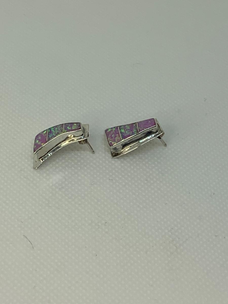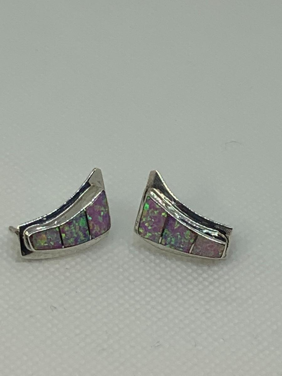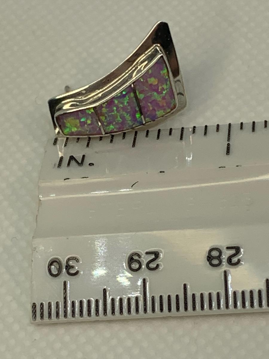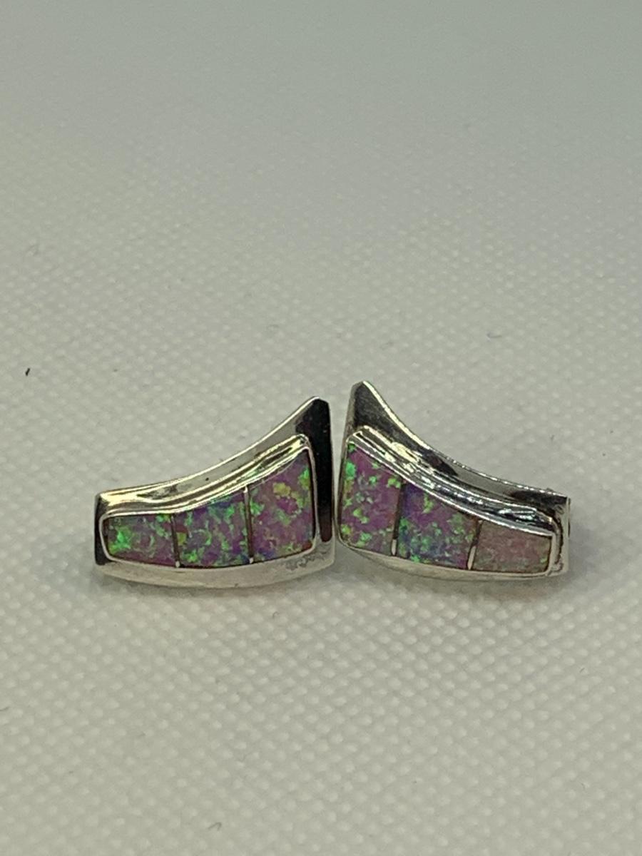 Vintage 80’s Native Navajo inlay Pink Rainbow Fire Iridescent Opal. -polished/signed 925 Sterling - Nel J.