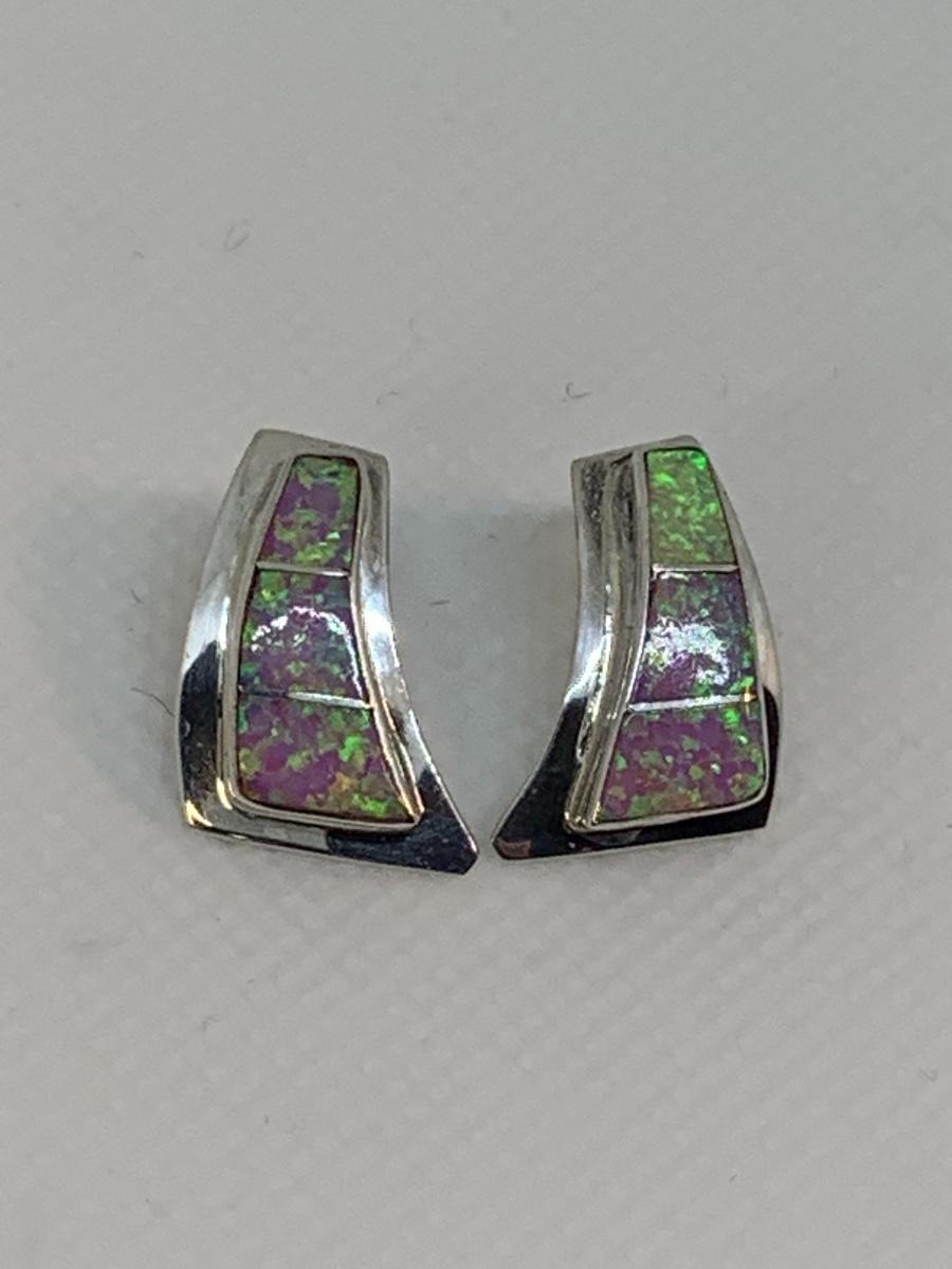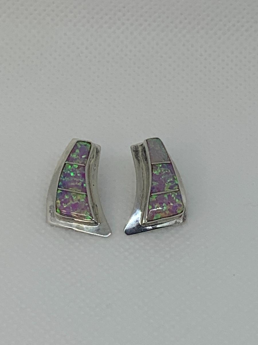 33: Navajo Nel J. Sterling Fire Opal pierced earrings
