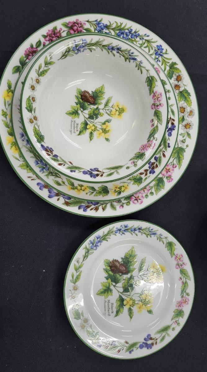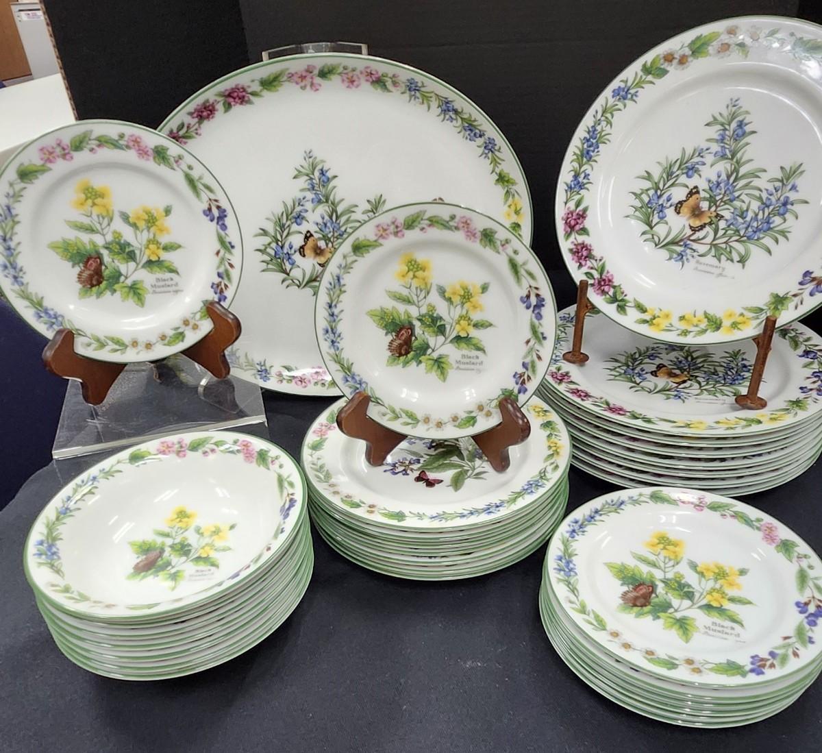 8 pieces each of dinner plate, luncheon plate, soup bowl, and Bread and butter plate.