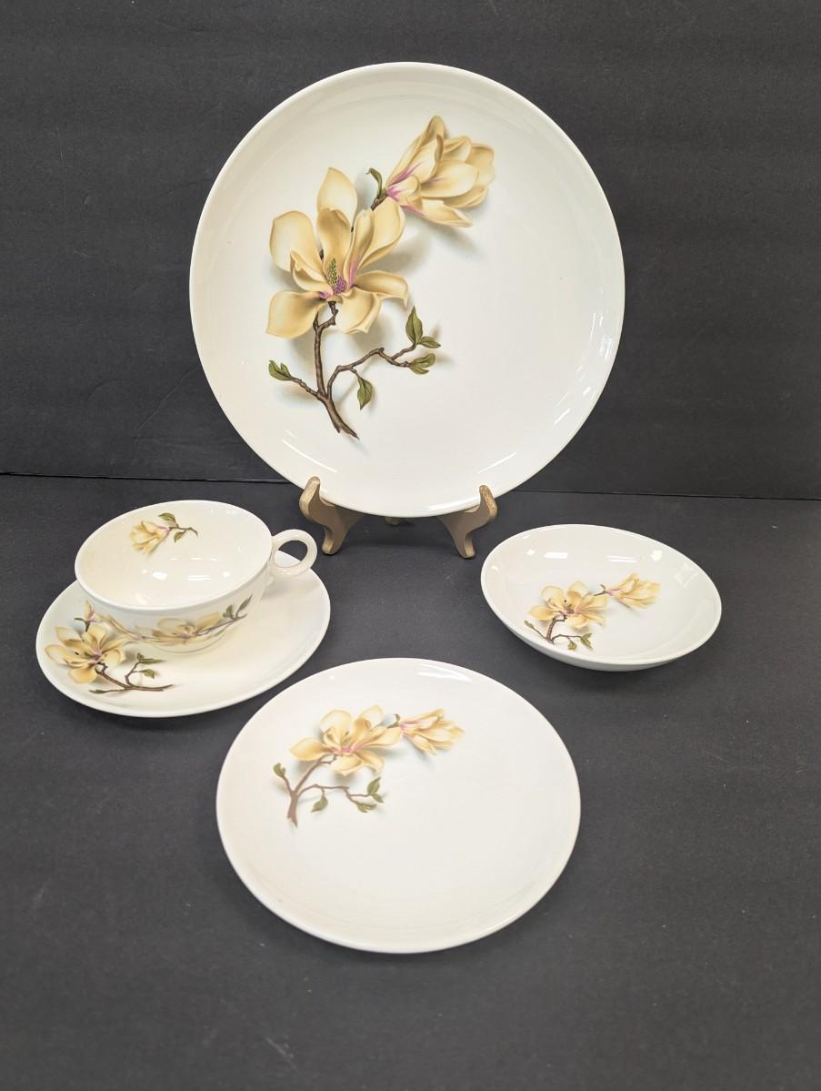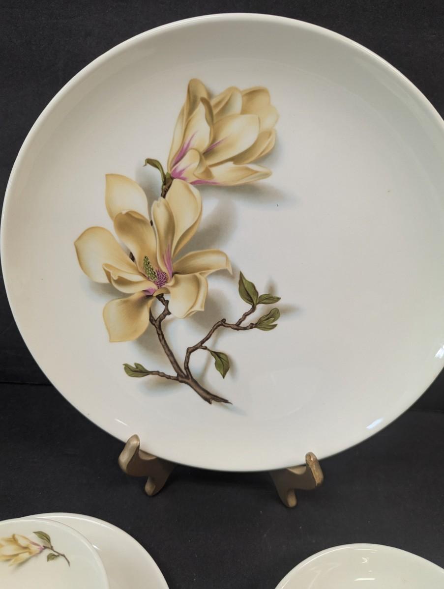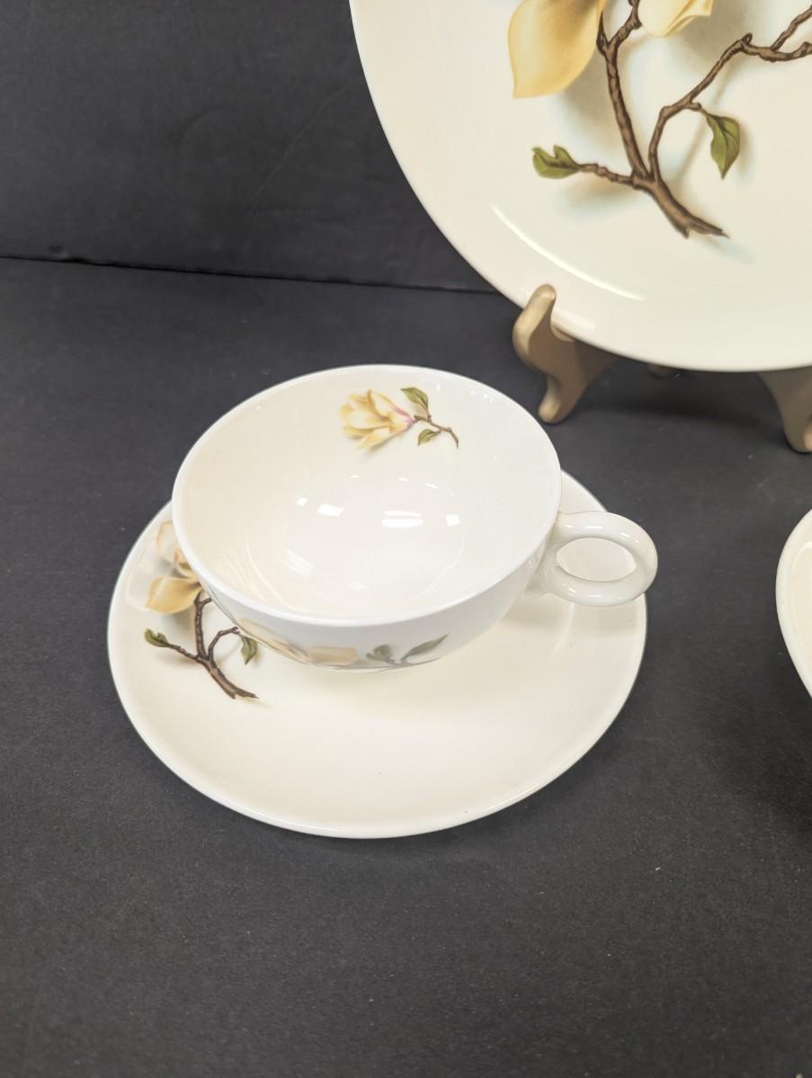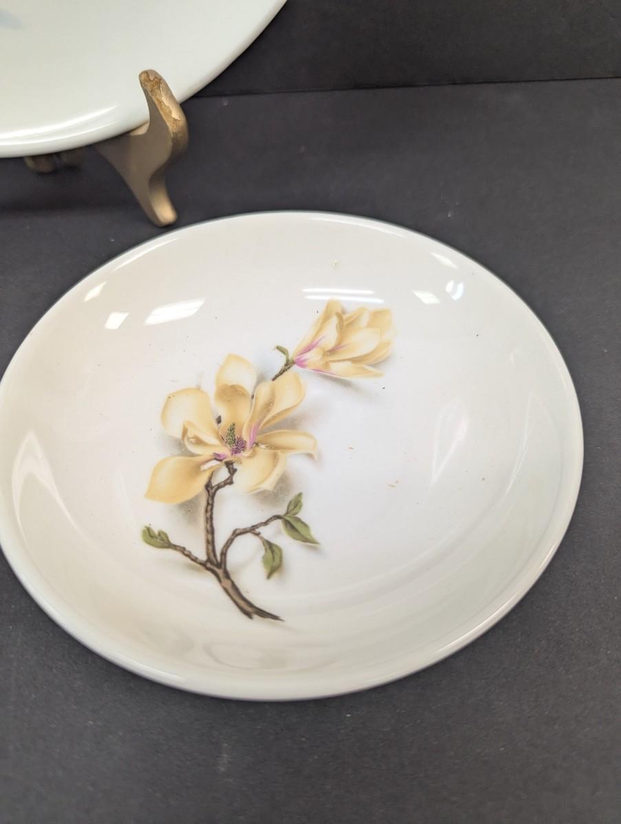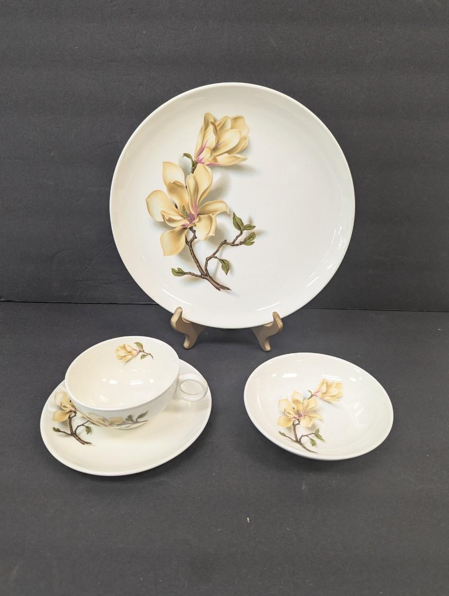 8 plates, 8 dessert plates 1 chipped, 7 cups, 3 bowls and 7 saucers
