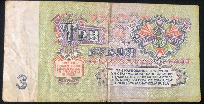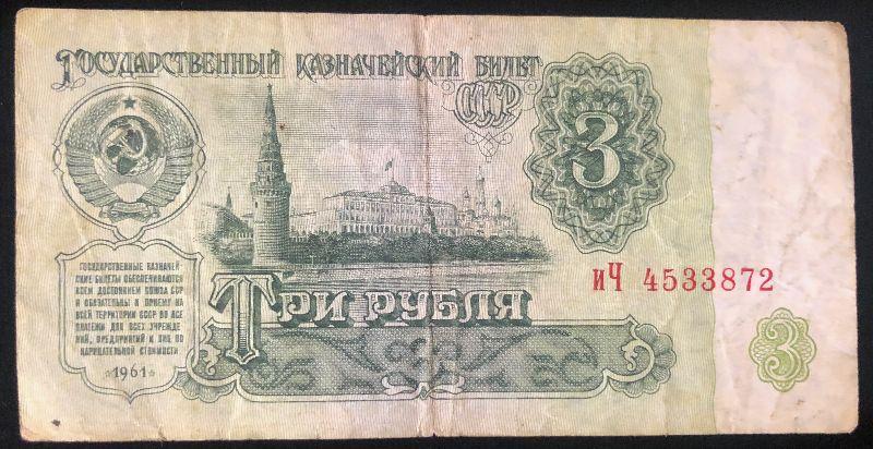 #33 Russian  "3 Ruble" Bill 1961 Bank Note