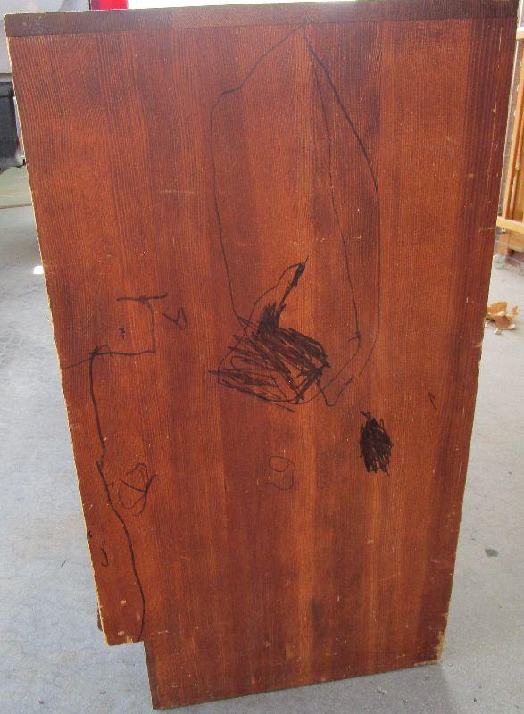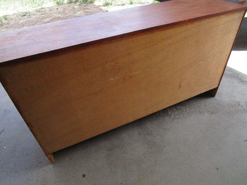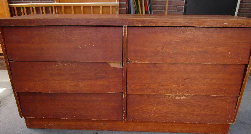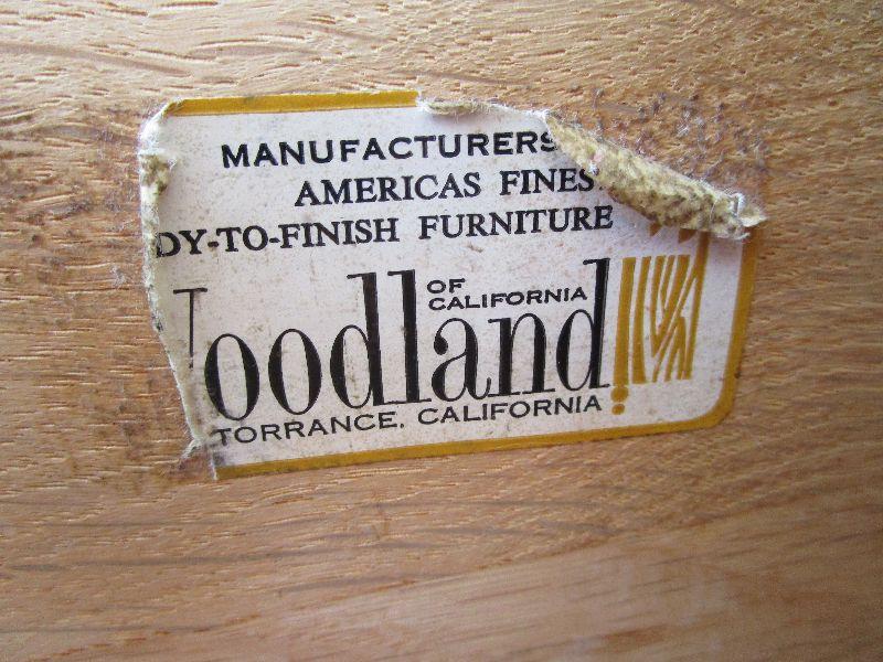 Six drawer dresser made by Woodland of California; 29" x 55 1/8" x 14", few chips in drawers see pictures for details, some child drawing on one end of dresser