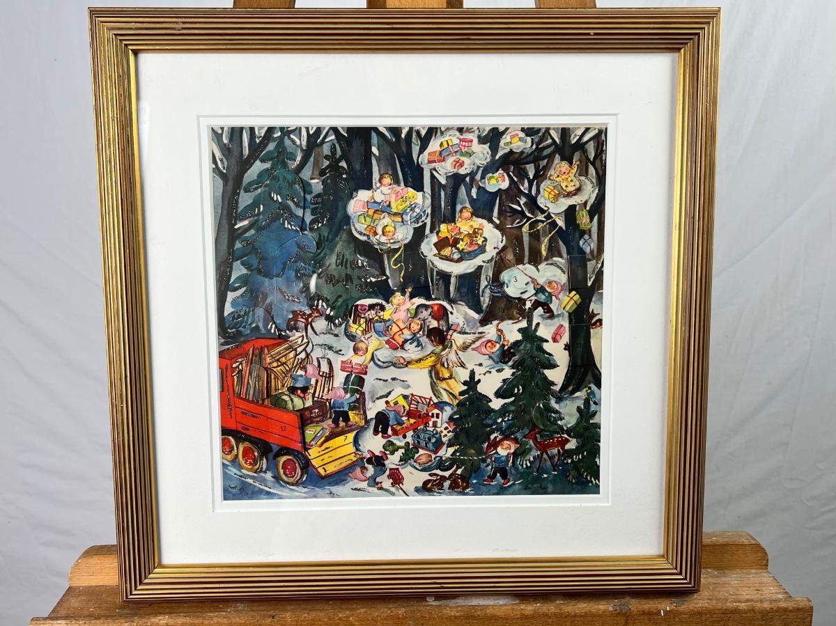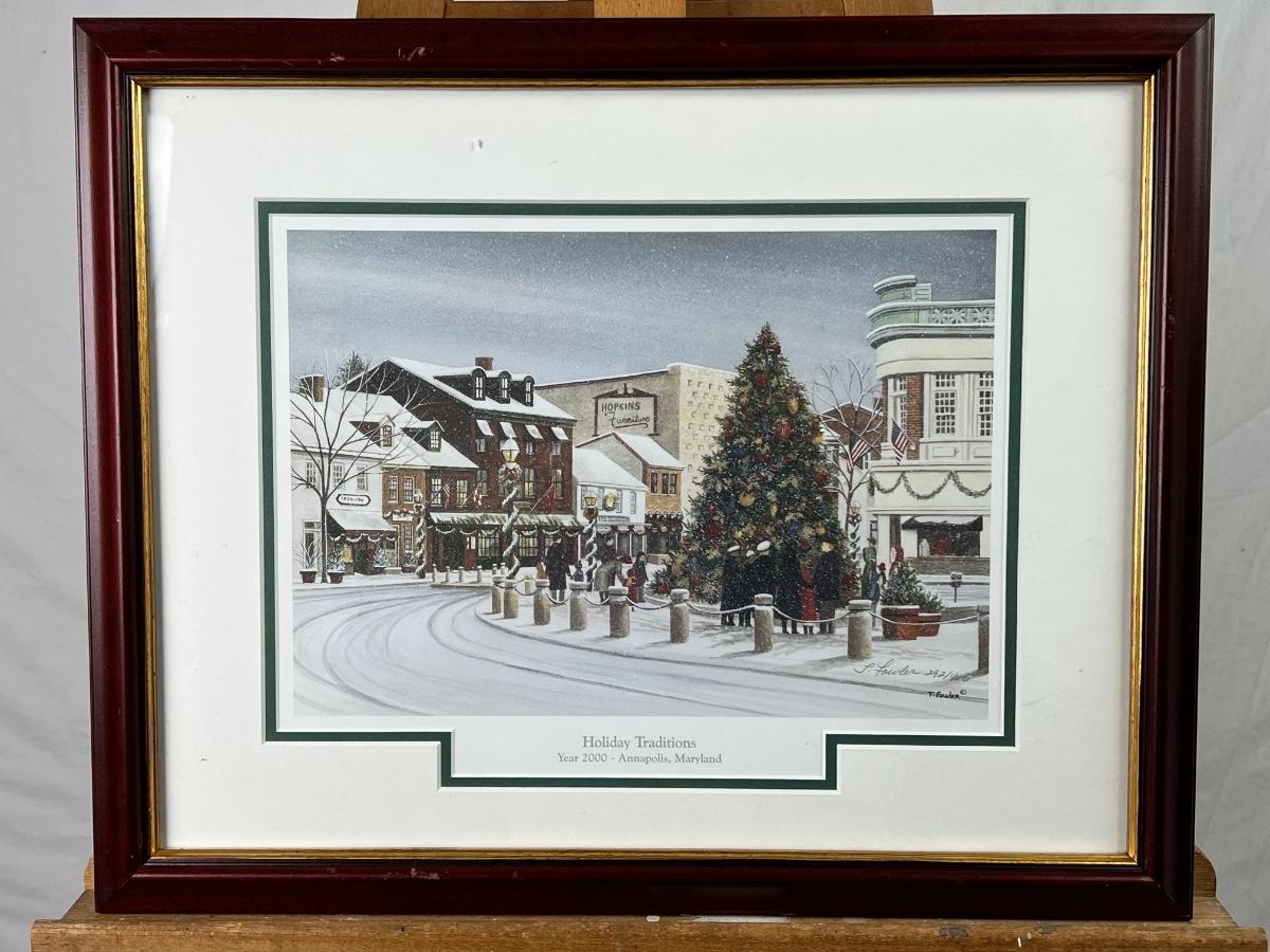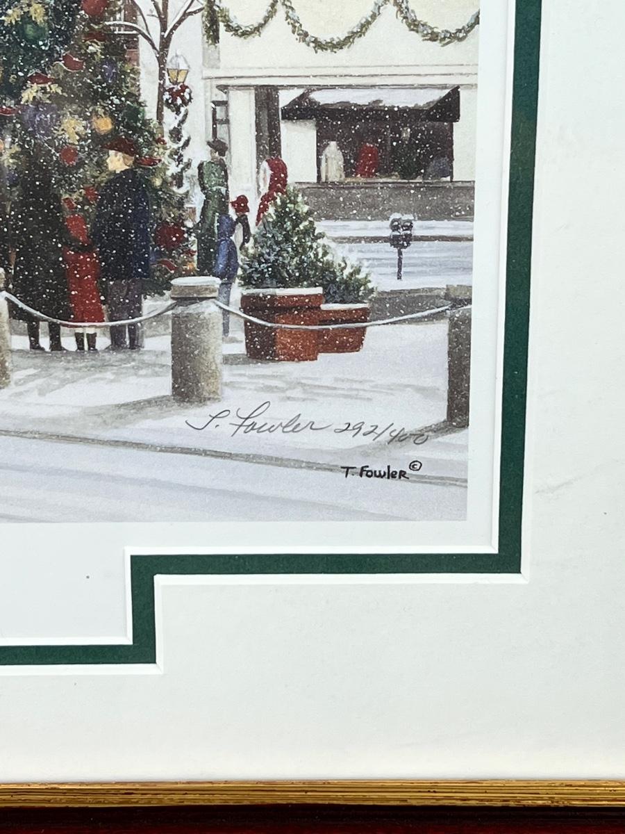Framed, double mat, numbered 292/400 print by J. Fowler. Titled "Holiday Traditions yr.2000".