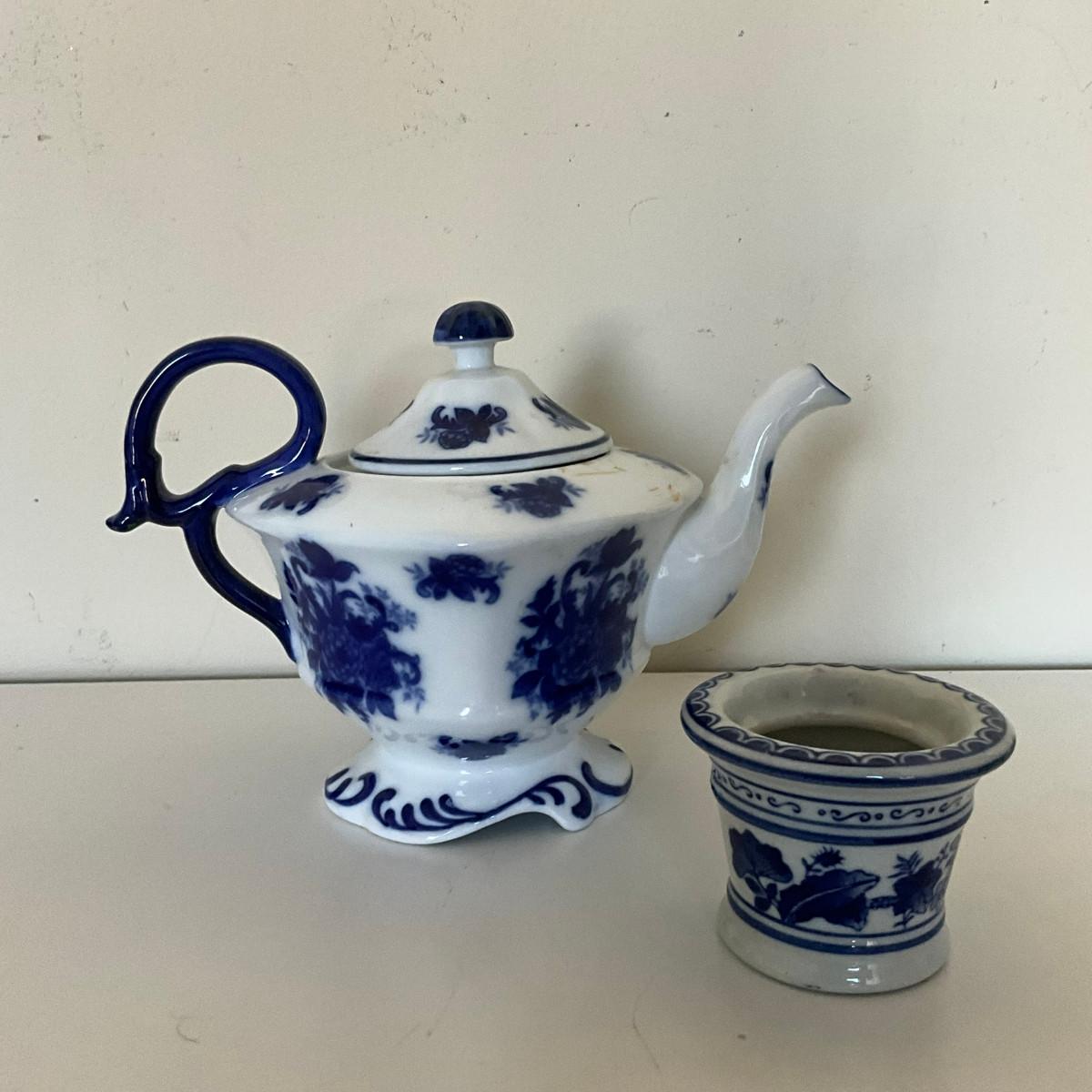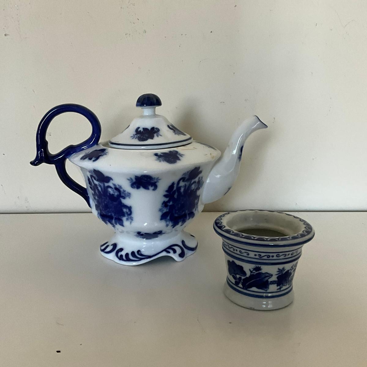 331 Blue & White Vintage Porclain Tea Pot With Sugar Bowl
